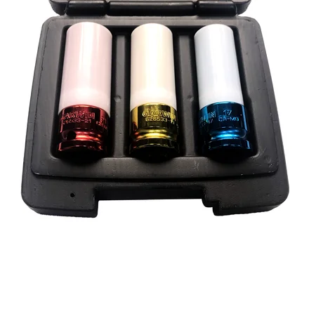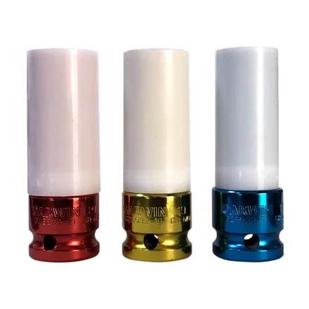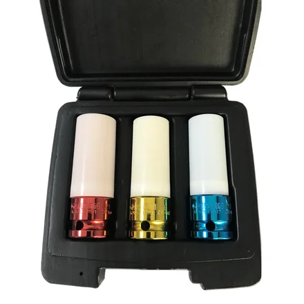 В наборе 3 удлиненных шестигранных головки с защитными колпачками: 17, 19 и 21 мм. Размер привода — ½ дюйма (12,7 мм).