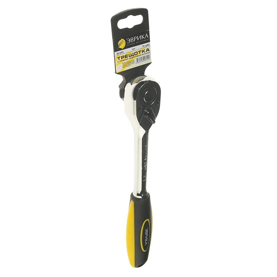 Трещотка с прямой резиновой ручкой 1/2 72-зубцовая ЭВРИКА ER-11272 представляет собой удобный инструмент для монтажа и демонтажа крепежных элементов различного вида. Благодаря флажковому переключателю и кнопке быстрого сброса можно быстро сменить направление вращения или оснастку. Технические характеристики: Трещотка: есть Диэлектрическое покрытие: нет Количество зубьев: 72 шт Шарнирный механизм: нет Посадочный квадрат: 1/2 дюйма Удлинитель: нет