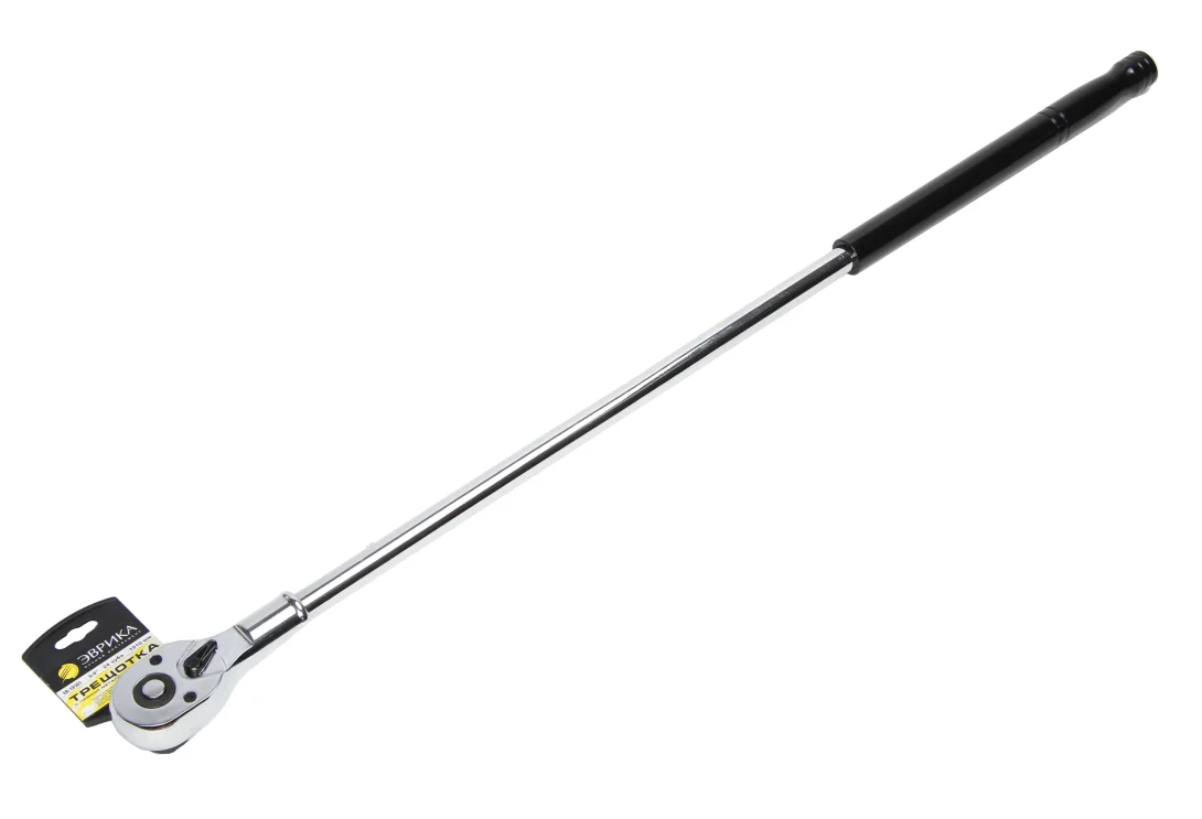 Трещотка с прямой металлической ручкой ЭВРИКА 3/4 24-зубцовая 1010мм ER-13101 представляет собой удобный инструмент для монтажа и демонтажа крепежных элементов различного вида. Благодаря флажковому переключателю и кнопке быстрого сброса можно быстро сменить направление вращения или оснастку. Технические характеристики: Длина: 1010 мм Трещотка: есть Материал: сталь Диэлектрическое покрытие: нет Количество зубьев: 24 шт Шарнирный механизм: нет Посадочный квадрат: 3/4 дюйма Удлинитель: нет Вид: дюймовый