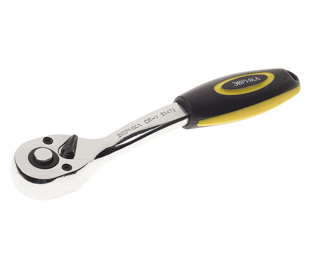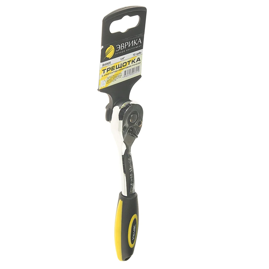 Трещотка с изогнутой резиновой ручкой ЭВРИКА 1/4 72-зубцовая ER-51472 представляет собой удобный инструмент для монтажа и демонтажа крепежных элементов различного вида. Благодаря флажковому переключателю и кнопке быстрого сброса можно быстро сменить направление вращения или оснастку. Технические характеристики: Трещотка: есть Диэлектрическое покрытие: нет Количество зубьев: 72 шт Шарнирный механизм: нет Посадочный квадрат: 1/4 дюйма Удлинитель: нет