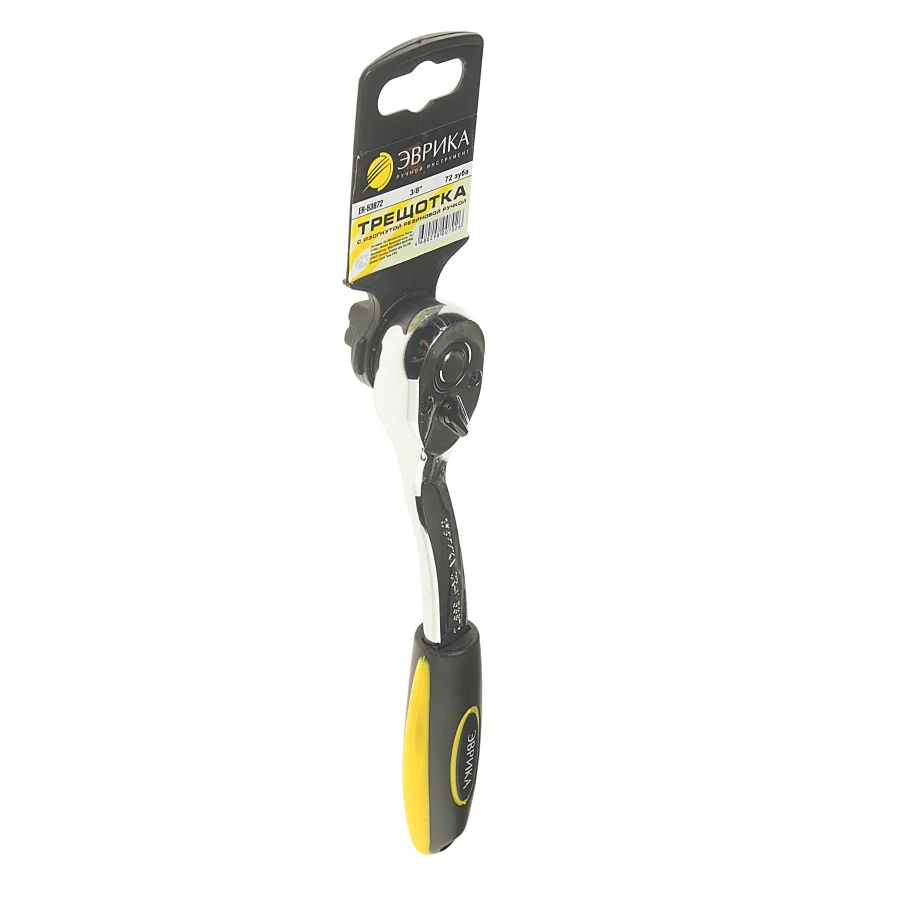 Трещотка с изогнутой резиновой ручкой ЭВРИКА 3/8 72-зубцовая ER-53872 представляет собой удобный инструмент для монтажа и демонтажа крепежных элементов различного вида. Благодаря флажковому переключателю и кнопке быстрого сброса можно быстро сменить направление вращения или оснастку. Технические характеристики: Трещотка: есть Диэлектрическое покрытие: нет Количество зубьев: 72 шт Шарнирный механизм: нет Посадочный квадрат: 3/8 дюйма Удлинитель: нет