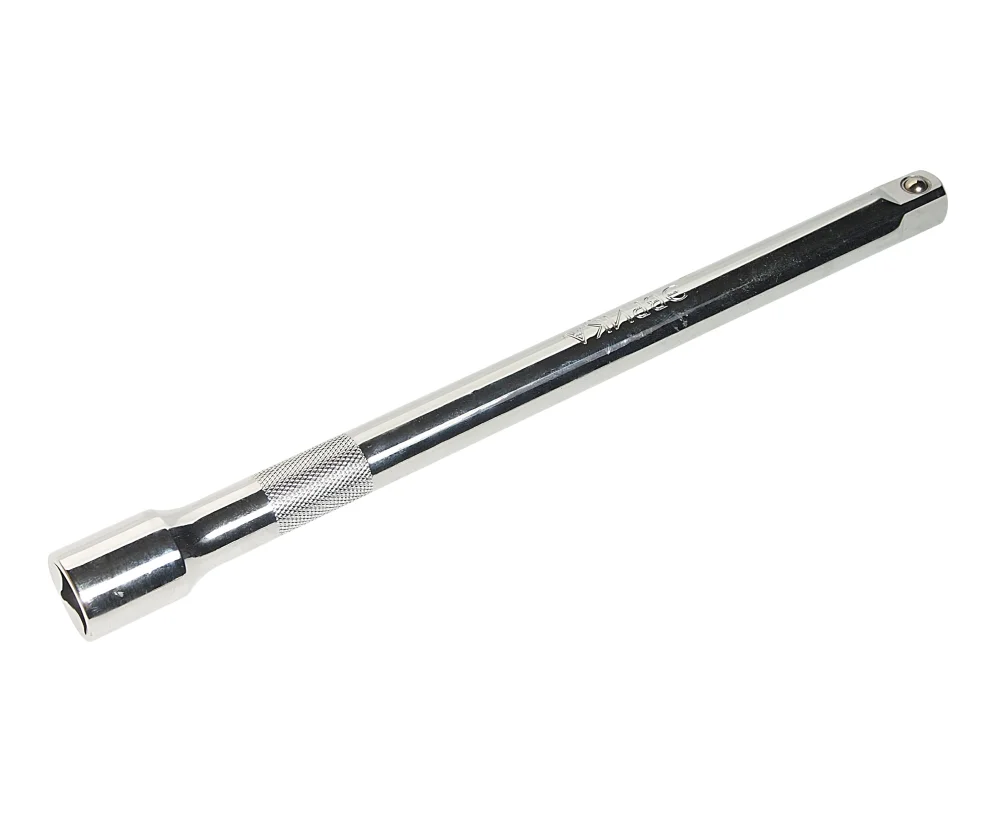 Описание Стержень с присоединительным квадратом на одном конце и гнездом того же размера на другом. Удлинитель изготовлен из хромованадиевой стали в соответствии DIN 3123. Отвечает требованиям ГОСТ 25600-83. Имеет зеркальное, коррозионностойкое, устойчивое к механическим воздействиям хромоникелевое покрытие. В верхней части инструмента имеется накатка для ручной передачи момента при свободном вращении крепежа. Область применения Передача крутящего момента на труднодоступные и заглубленные резьбовые соединения.
