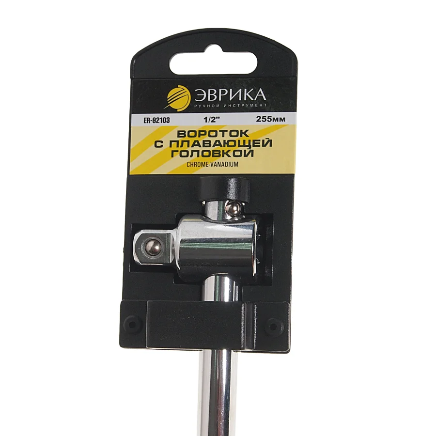 Вороток ER-92103H 1/2" DR Т-образный с подвижной головкой 255мм(с держателем) ЭВРИКА удобен для работы с крепежом различного формата. Инструмент можно дополнить подходящей оснасткой или удлинителями для монтажа заглубленного крепежа.