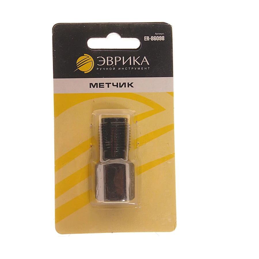 Метчик для восстановления резьбы в отверстиях под датчик кислорода и свечи зажигания ЭВРИКА ER-86098 оснащен пазом под посадочный квадрат 3/8". Инструмент оснащен ограниченной по длине резьбой, что исключает повреждение других компонентов двигателя. Технические характеристики: Направление резьбы: правая Сталь: Cr-V Тип резьбы: метрическая(М) Диаметр резьбы(М): М18 Шаг резьбы М: 1.5 мм Посадочный квадрат: 14 мм Вид: гаечный Вес: 0,083 кг