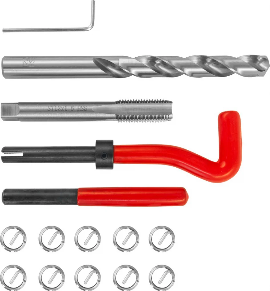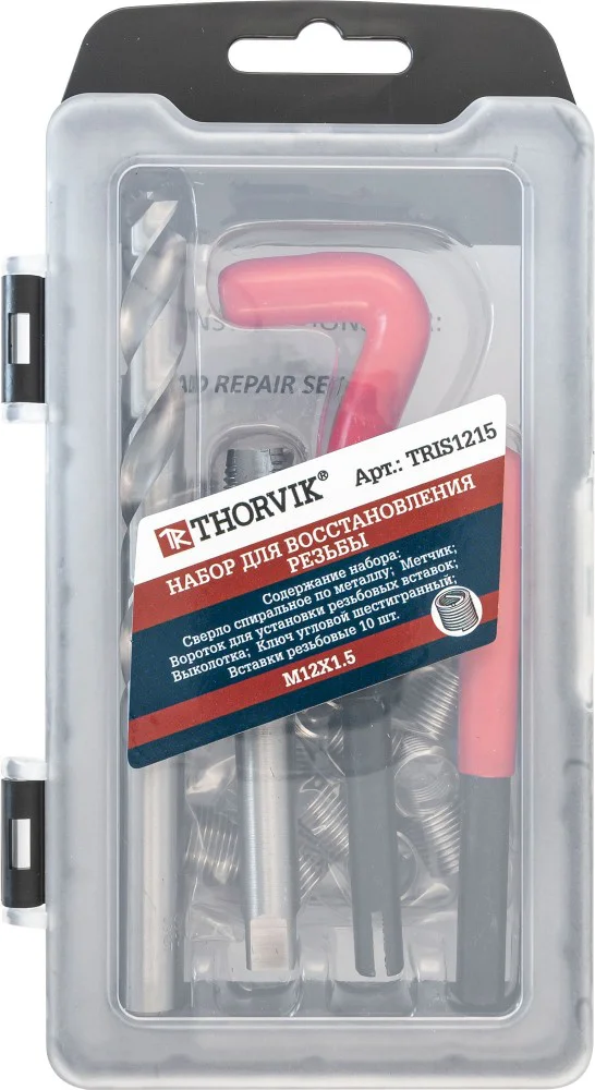 Описание Набор для восстановления резьбы M12x1.5. Набор предназначен для восстановления функциональности и изначальных размеров изношенного или поврежденного резьбового соединения. Длина резьбовой вставки 1,5D. Технические характеристики Артикул Код Резьбовая вставка Длина резьбовой вставки Кол-во в наборе TRIS1215 53179 M12x1.5 1,5D 15 шт.