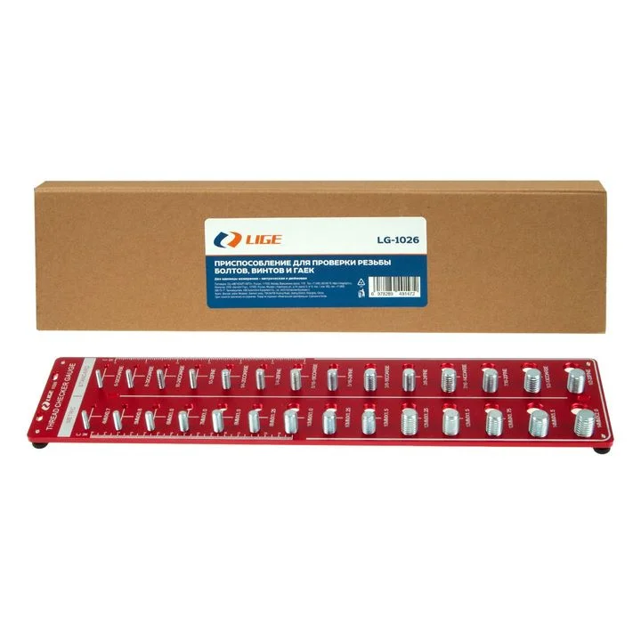 "Подходит для измерения и проверки резьбы винтов, гаек и болтов. Две единицы измерения — метрическая и дюймовая, просты в использовании; можно подвешивать, конструкция удобна для переноски. Метрические: 4MMX0.7, 5MMX0.8, 6MMX1.0, 7MMX1.0, 8MMX1.0, 8MMX1.25, 10MMX1.0, 10MMX- 1.25, 10MMX1.5, 12MMX1.25, 12MMX1.5, 12MMX1.75, 14MMX1.5, 14MMX2.0 Дюймовые: 6-32 ГРУБЫЙ, 8-32 ГРУБЫЙ, 10-24 ГРУБЫЙ, 10-32 ТОНКИЙ, 1/4-20 ГРУБЫЙ, 1/4-28 ТОНКИЙ, 5/16-18 ГРУБЫЙ, 5/16-24 ТОНКИЙ, 3/8-16 ГРУБЫЙ, 3/8-24 ТОНКИЙ, 7 /16-14 ГРУБЫЙ, 7/16-20тонкий, 1/2-13грубый, 1/2-20тонкий"