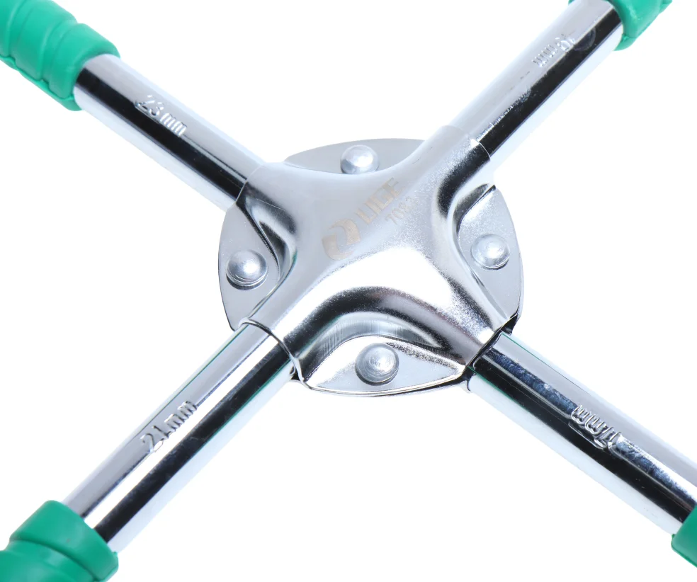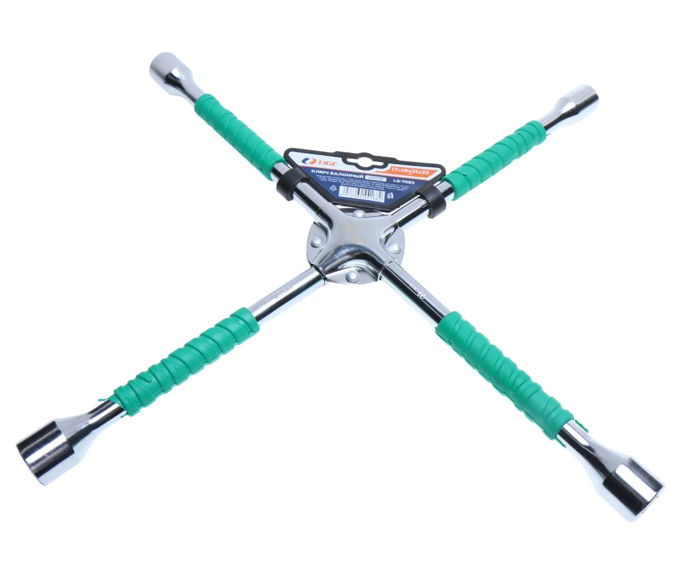 Ключ баллонный крестовой – это один из типов гаечных ключей с торцевым рабочим профилем, которым можно ослабить или затянуть зажимные гайки, фиксирующие автомобильные колеса. Инструмент надёжный и простой в использовании. Ключ баллонный используется при установке и демонтаже колес автомобилей. 17х19х21х23мм, резиновыми рукоятками, L=500мм