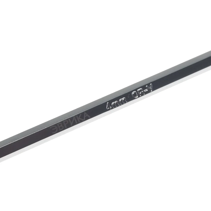 Шестигранный ключ 4мм Г-образный удлиненный с шаром ЭВРИКА ER-76504L. Ключ шестигранный 4 мм — это не просто инструмент, а надежный партнер в ваших проектах. Он изготовлен из высококачественной стали, что гарантирует долговечность и устойчивость к износу. Удобная форма рукоятки обеспечивает надежный захват и комфорт при работе, что позволяет избежать скольжения и травм. Шестигранники, подобные этому, широко используются в различных областях: от автосервиса до сборки мебели. Их популярность объясняется простотой использования и высокой эффективностью. Этот ключ станет отличным дополнением к вашему инструментальному набору и поможет вам справиться с любыми задачами, связанными с затяжкой или ослаблением крепежей. Если вы ищете инструмент, который сочетает в себе качество, функциональность и доступную цену, то этот удлиненный ключ станет идеальным выбором. Он не только облегчит вашу работу, но и обеспечит надежный результат. Не упустите возможность сделать свой рабочий процесс более эффективным и комфортным. Приобретая шестигранный ключ, вы инвестируете в свое время и усилия. Не позволяйте мелким задачам отвлекать вас от более важных дел. С нашим инструментом вы сможете быстро и качественно выполнять любые работы. Позаботьтесь о своем инструментальном арсенале уже сегодня и оцените все преимущества, которые предлагает ключ шестигранный 4 мм. Технические характеристики: Размер max: 4 мм Размер шестигранника: 4 мм Трещотка: нет Формфактор: Г-образный С шаровым окончанием: да Диэлектрическое покрытие: нет