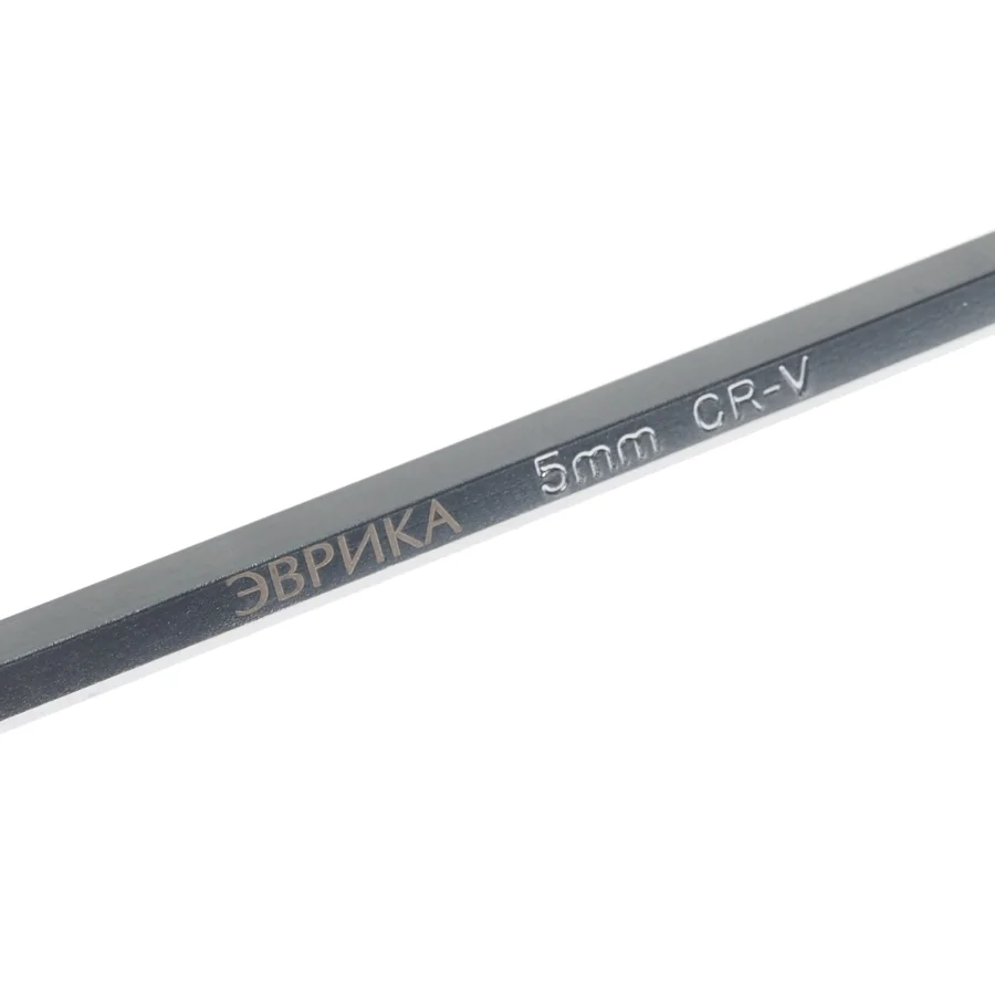 Ключ шестигранный 5мм Г-образный экстра длинный ЭВРИКА ER-76405XL. Ключ шестигранный 5 мм — это не просто инструмент, а надежный партнер в ваших проектах. Он изготовлен из высококачественной стали, что гарантирует долговечность и устойчивость к износу. Удобная форма рукоятки обеспечивает надежный захват и комфорт при работе, что позволяет избежать скольжения и травм. Шестигранники, подобные этому, широко используются в различных областях: от автосервиса до сборки мебели. Их популярность объясняется простотой использования и высокой эффективностью. Этот ключ станет отличным дополнением к вашему инструментальному набору и поможет вам справиться с любыми задачами, связанными с затяжкой или ослаблением крепежей. Если вы ищете инструмент, который сочетает в себе качество, функциональность и доступную цену, то этот удлиненный ключ станет идеальным выбором. Он не только облегчит вашу работу, но и обеспечит надежный результат. Не упустите возможность сделать свой рабочий процесс более эффективным и комфортным. Приобретая шестигранный ключ, вы инвестируете в свое время и усилия. Не позволяйте мелким задачам отвлекать вас от более важных дел. С нашим инструментом вы сможете быстро и качественно выполнять любые работы. Позаботьтесь о своем инструментальном арсенале уже сегодня и оцените все преимущества, которые предлагает ключ шестигранный 5 мм. Технические характеристики: Длина короткой части: 34 мм Длина длинной части: 152 мм Размер min: 5 мм Размер max: 5 мм Размер шестигранника: 5 мм Размер(дюйм): нет Трещотка: нет Формфактор: Г-образный С шаровым окончанием: нет Диэлектрическое покрытие: нет Вид: миллиметровый