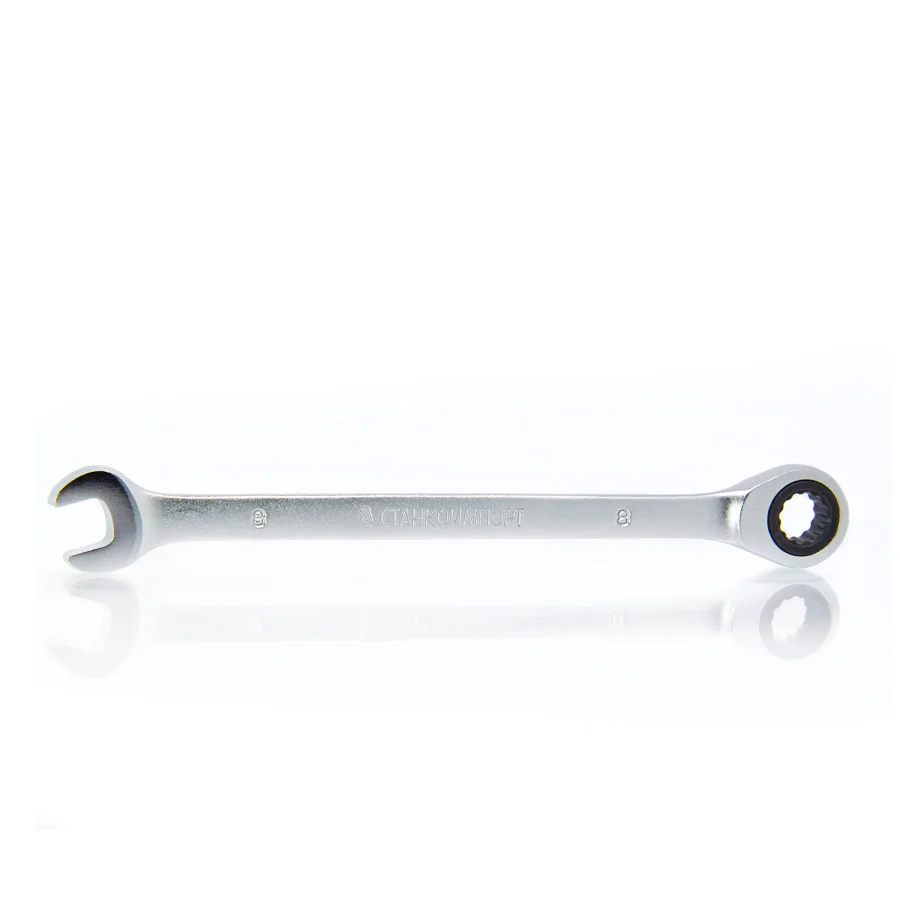Описание Гаечный комбинированный ключ представляет собой конструкцию, объединяющую рожковый профиль и накидной профиль с рабочей частью со встроенным храповым механизмом. Сочетание двух одноразмерных профилей компенсируют недостатки каждого в отдельности. Храповой механизм с колесом в 72 зуба обеспечивает высокий передаваемый крутящий момент благодаря применяемой хромованадиевой стали, закаленной особым способом. Малый, 5°, обратный ход делает ключ незаменимым в ограниченном рабочем пространстве. Ключи изготовлены по стандарту ANSI, имеют трехслойное хромоникелевое покрытие, зеркально отполированы. Область применения Ключи гаечные комбинированные ключи – универсальные гаечные ключи, совмещающие в себе функционал и преимущества рожковых и накидных ключей. Зевы комбинированных ключей имеют одинаковые размеры. Именно сочетание сильных сторон рожковых и накидных ключей и нивелирование сторон слабых делают комбинированные ключи исключительно широко востребованными со стороны потребителей и применяемыми в самых разных сферах – производственной, ремонтной, авторемонтной, бытовой и других. Ключи гаечные с открытым и кольцевым зевами предназначены для монтажа либо демонтажа резьбовых соединений. Размеры Артикул Размер В1, мм В2, мм Н1, мм Н2, мм L, мм W45118 18 36,4 33,4 8,6 10,6 236,4