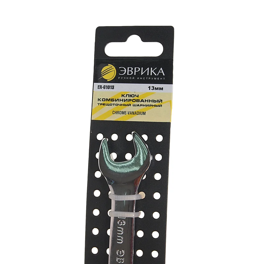 Комбинированный трещоточный шарнирный ключ 13мм ЭВРИКА ER-61013H Ищете надежный инструмент для выполнения различных задач? Обратите внимание на комбинированный трещоточный ключ, который станет незаменимым помощником в вашем арсенале. Этот инструмент сочетает в себе функциональность и удобство, что делает его идеальным выбором как для профессионалов, так и для домашних мастеров. Ключи с трещоткой обеспечивают возможность быстрого и легкого закручивания и откручивания крепежных элементов. Благодаря уникальной конструкции, вам не придется каждый раз снимать инструмент с гайки, что значительно ускоряет процесс работы. Это особенно полезно в ограниченных пространствах, где маневрировать обычным ключом сложно. Комбинированные трещоточные ключи предлагают два типа головок: открытая и закрытая. Это позволяет использовать один инструмент для выполнения множества задач. Вы сможете легко работать с различными типами крепежа, будь то болты, гайки или другие элементы. Такой универсальный подход делает ключи трещоточные идеальным выбором для автосервиса, домашнего ремонта или даже для профессионального использования в строительстве. Качество и долговечность – это ключевые характеристики, которые отличают наш продукт от других на рынке. Изготовленный из прочной стали, комбинированный трещоточный ключ устойчив к износу и коррозии, что гарантирует его долгий срок службы. Эффективная конструкция и эргономичная рукоятка обеспечивают комфортное использование, даже при длительных работах. Технические характеристики: Длина: 240 мм Размер min: 13 Размер max: 13 Материал: CrV Покрытие: хромовое Трещотка: есть Шарнирный механизм: есть Вес: 0,126 кг Диэлектрическое покрытие: нет