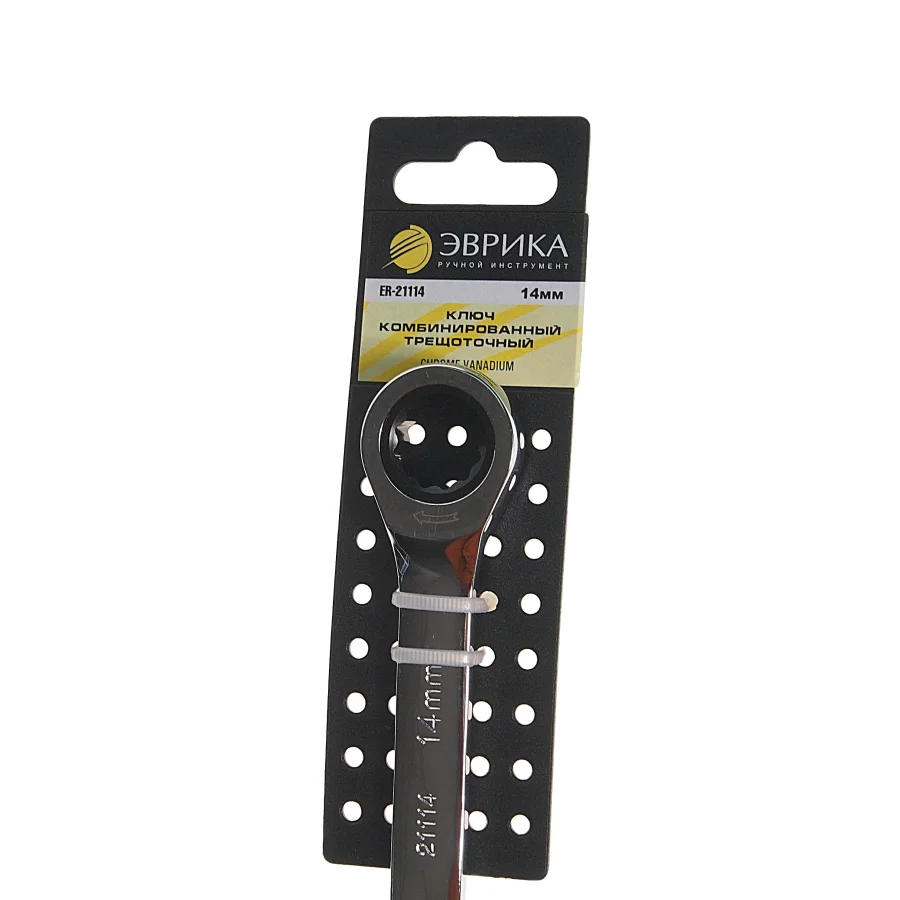 Комбинированный трещоточный ключ 14мм на держателе ЭВРИКА ER-21114H Ищете надежный инструмент для выполнения различных задач? Обратите внимание на комбинированный трещоточный ключ, который станет незаменимым помощником в вашем арсенале. Этот инструмент сочетает в себе функциональность и удобство, что делает его идеальным выбором как для профессионалов, так и для домашних мастеров. Ключи с трещоткой обеспечивают возможность быстрого и легкого закручивания и откручивания крепежных элементов. Благодаря уникальной конструкции, вам не придется каждый раз снимать инструмент с гайки, что значительно ускоряет процесс работы. Это особенно полезно в ограниченных пространствах, где маневрировать обычным ключом сложно. Комбинированные трещоточные ключи предлагают два типа головок: открытая и закрытая. Это позволяет использовать один инструмент для выполнения множества задач. Вы сможете легко работать с различными типами крепежа, будь то болты, гайки или другие элементы. Такой универсальный подход делает ключи трещоточные идеальным выбором для автосервиса, домашнего ремонта или даже для профессионального использования в строительстве. Качество и долговечность – это ключевые характеристики, которые отличают наш продукт от других на рынке. Изготовленный из прочной стали, комбинированный трещоточный ключ устойчив к износу и коррозии, что гарантирует его долгий срок службы. Эффективная конструкция и эргономичная рукоятка обеспечивают комфортное использование, даже при длительных работах. Технические характеристики: Длина: 240 мм Размер min: 14 Размер max: 14 Материал: CrV Покрытие: хромовое Трещотка: есть Шарнирный механизм: нет Вес: 0,137 кг Диэлектрическое покрытие: нет