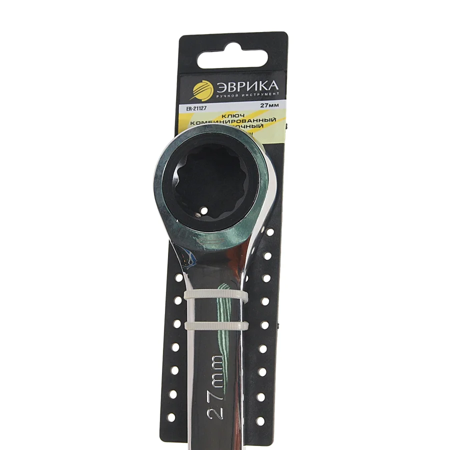 Комбинированный трещоточный ключ 27мм на держателе ЭВРИКА ER-21127H Ищете надежный инструмент для выполнения различных задач? Обратите внимание на комбинированный трещоточный ключ, который станет незаменимым помощником в вашем арсенале. Этот инструмент сочетает в себе функциональность и удобство, что делает его идеальным выбором как для профессионалов, так и для домашних мастеров. Ключи с трещоткой обеспечивают возможность быстрого и легкого закручивания и откручивания крепежных элементов. Благодаря уникальной конструкции, вам не придется каждый раз снимать инструмент с гайки, что значительно ускоряет процесс работы. Это особенно полезно в ограниченных пространствах, где маневрировать обычным ключом сложно. Комбинированные трещоточные ключи предлагают два типа головок: открытая и закрытая. Это позволяет использовать один инструмент для выполнения множества задач. Вы сможете легко работать с различными типами крепежа, будь то болты, гайки или другие элементы. Такой универсальный подход делает ключи трещоточные идеальным выбором для автосервиса, домашнего ремонта или даже для профессионального использования в строительстве. Качество и долговечность – это ключевые характеристики, которые отличают наш продукт от других на рынке. Изготовленный из прочной стали, комбинированный трещоточный ключ устойчив к износу и коррозии, что гарантирует его долгий срок службы. Эффективная конструкция и эргономичная рукоятка обеспечивают комфортное использование, даже при длительных работах. Технические характеристики: Покрытие: хромирование Трещотка: есть Длина: 410 мм Размер min: 27 мм Размер min (дюйм): нет Размер max: 27 мм Размер max (дюйм): нет Материал: CrV Шарнирный механизм: нет Диэлектрическое покрытие: нет Количество граней кольцевой головки: 12 Вес: 0.663 кг Вид: миллиметровый