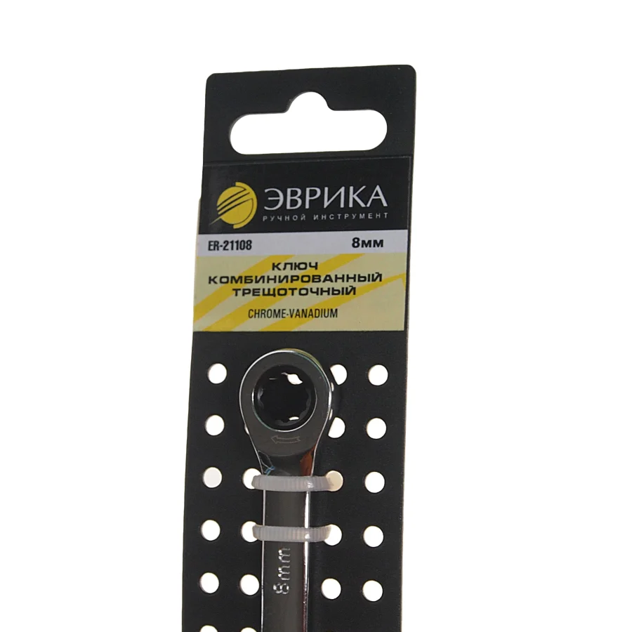 Комбинированный трещоточный ключ 8мм на держателе ЭВРИКА ER-21108H Ищете надежный инструмент для выполнения различных задач? Обратите внимание на комбинированный трещоточный ключ, который станет незаменимым помощником в вашем арсенале. Этот инструмент сочетает в себе функциональность и удобство, что делает его идеальным выбором как для профессионалов, так и для домашних мастеров. Ключи с трещоткой обеспечивают возможность быстрого и легкого закручивания и откручивания крепежных элементов. Благодаря уникальной конструкции, вам не придется каждый раз снимать инструмент с гайки, что значительно ускоряет процесс работы. Это особенно полезно в ограниченных пространствах, где маневрировать обычным ключом сложно. Комбинированные трещоточные ключи предлагают два типа головок: открытая и закрытая. Это позволяет использовать один инструмент для выполнения множества задач. Вы сможете легко работать с различными типами крепежа, будь то болты, гайки или другие элементы. Такой универсальный подход делает ключи трещоточные идеальным выбором для автосервиса, домашнего ремонта или даже для профессионального использования в строительстве. Качество и долговечность – это ключевые характеристики, которые отличают наш продукт от других на рынке. Изготовленный из прочной стали, комбинированный трещоточный ключ устойчив к износу и коррозии, что гарантирует его долгий срок службы. Эффективная конструкция и эргономичная рукоятка обеспечивают комфортное использование, даже при длительных работах. Технические характеристики: Покрытие: хромирование Трещотка: есть Длина: 195 мм Размер min: 8 мм Размер min(дюйм): нет Размер max: 8 мм Размер max(дюйм): нет Материал: CrV Шарнирный механизм: нет Диэлектрическое покрытие: нет Количество граней кольцевой головки: 12 Вес: 0.052 кг Вид: миллиметровый