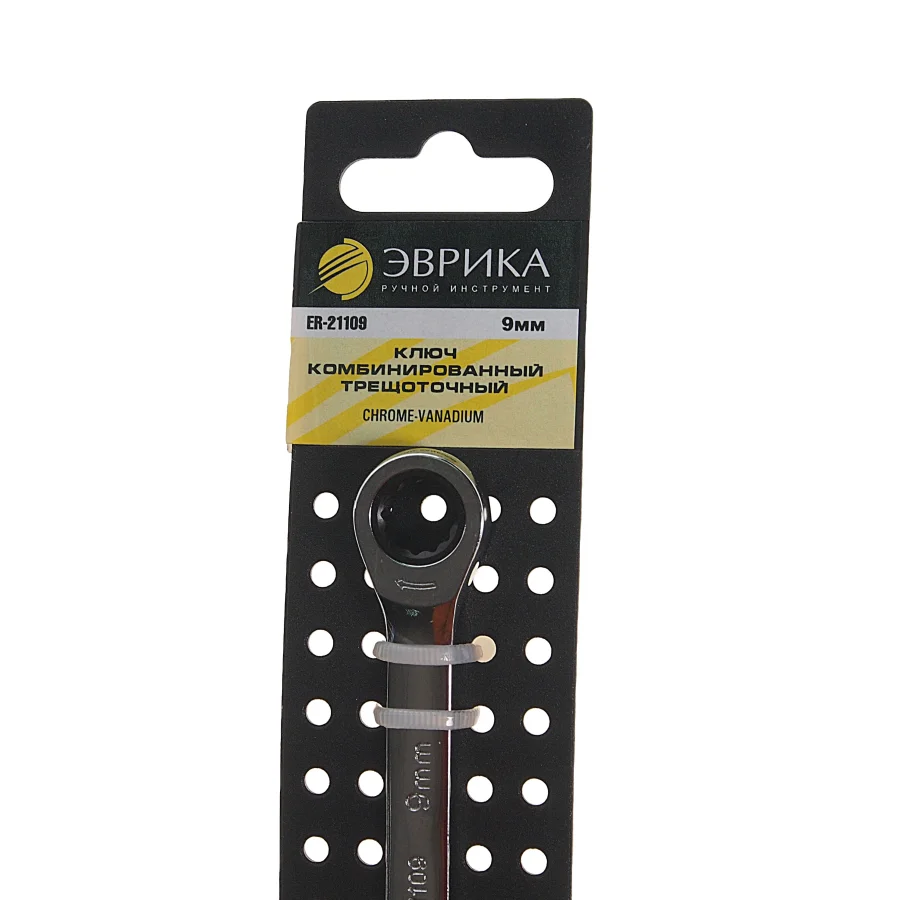 Комбинированный трещоточный ключ 9мм на держателе ЭВРИКА ER-21109H Ищете надежный инструмент для выполнения различных задач? Обратите внимание на комбинированный трещоточный ключ, который станет незаменимым помощником в вашем арсенале. Этот инструмент сочетает в себе функциональность и удобство, что делает его идеальным выбором как для профессионалов, так и для домашних мастеров. Ключи с трещоткой обеспечивают возможность быстрого и легкого закручивания и откручивания крепежных элементов. Благодаря уникальной конструкции, вам не придется каждый раз снимать инструмент с гайки, что значительно ускоряет процесс работы. Это особенно полезно в ограниченных пространствах, где маневрировать обычным ключом сложно. Комбинированные трещоточные ключи предлагают два типа головок: открытая и закрытая. Это позволяет использовать один инструмент для выполнения множества задач. Вы сможете легко работать с различными типами крепежа, будь то болты, гайки или другие элементы. Такой универсальный подход делает ключи трещоточные идеальным выбором для автосервиса, домашнего ремонта или даже для профессионального использования в строительстве. Качество и долговечность – это ключевые характеристики, которые отличают наш продукт от других на рынке. Изготовленный из прочной стали, комбинированный трещоточный ключ устойчив к износу и коррозии, что гарантирует его долгий срок службы. Эффективная конструкция и эргономичная рукоятка обеспечивают комфортное использование, даже при длительных работах. Технические характеристики: Покрытие: хромирование Трещотка: есть Длина: 200 мм Размер min: 9 мм Размер min(дюйм): нет Размер max: 9 мм Размер max(дюйм): нет Материал: CrV Шарнирный механизм: нет Диэлектрическое покрытие: нет Количество граней кольцевой головки: 12 Вес: 0.06 кг Вид: миллиметровый