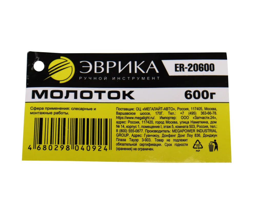 GARWIN INDUSTRIAL GHT-HW0600 Молоток слесарный Garwin INDUSTRIAL с рукояткой из дерева гикори, 600 г