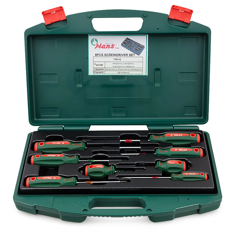 3334/3350/3355/6 Набор отвёрток, нерж. + подставка, 6 пр., PH 1x80/2x100, PZ 1x80/2x100, SL 0.5x3x80