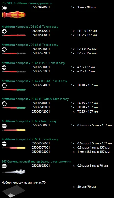 Лазерная гравировка типоразмера шлица на ручке и стержне позволяет быстро найти нужную отвертку. Типоразмер дополнительно можно определить по цветовой индикации на тыльной стороне ручки.