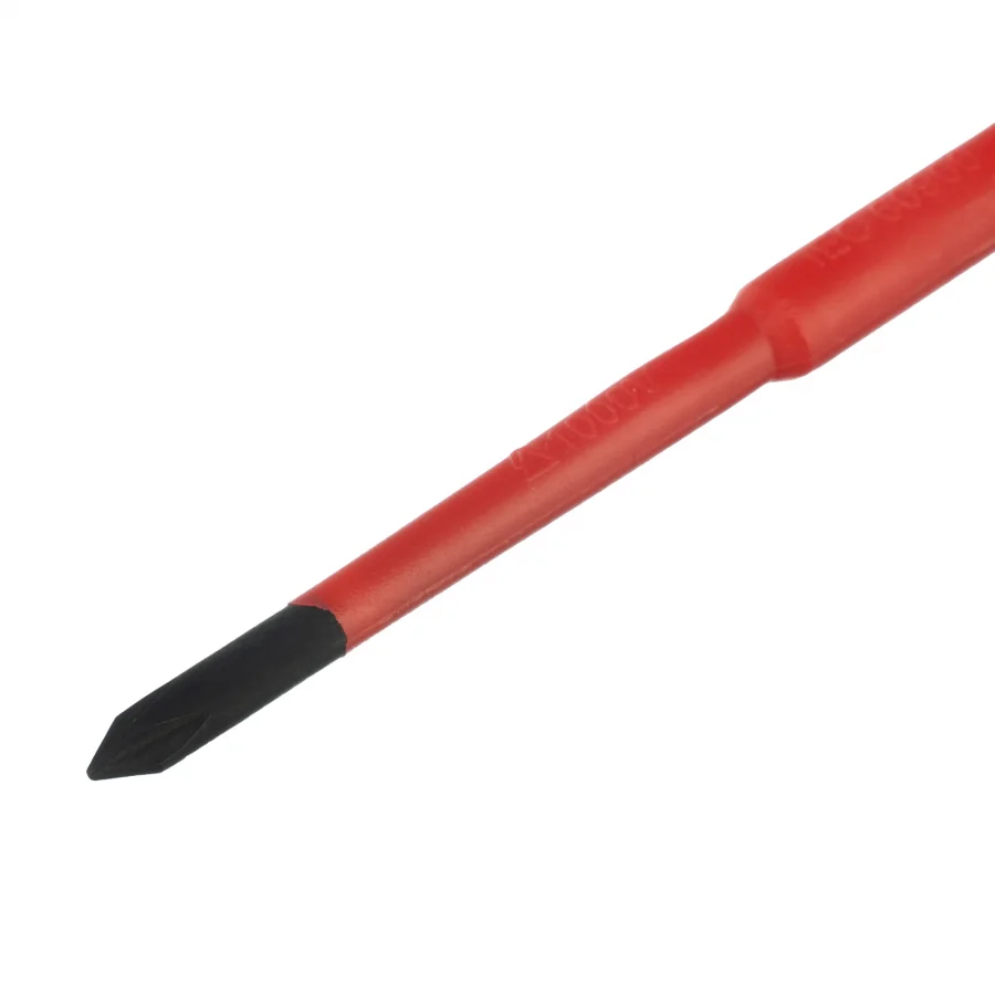 Диэлектрическая отвертка Gross 12946 до 1000 В, PH0 х 75 мм, из стали CrMo, с двухкомпонентной рукояткой, применяется при проведении работ с крепежом типа Phillips. С ее помощью можно установить электросчетчики, клеммники, розетки и т.д. Отвертка со стержнем длиной 75 мм оптимально подходит для работы на поверхностях и в углублениях. Внимание — техника безопасности запрещает выполнять работы под напряжением!