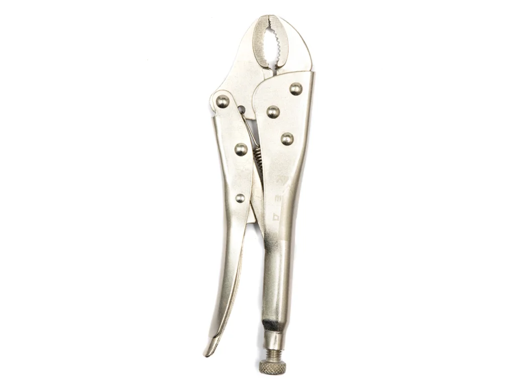 Ручной зажим сделан из стали и имеет хромированное покрытие. Надежная фиксация деталей обеспечивается благодаря прочной конструкции системы фиксации и губкам с насечкой, которые выполнены из качественной углеродистой стали. Рабочие поверхности губок закалены и имеют твердость (HRC) 43°±2.