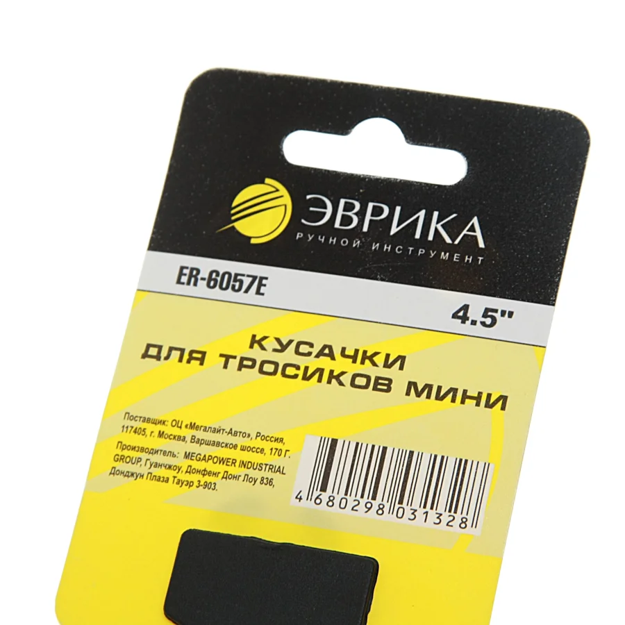 Кусачки для тросиков мини 4,5" ЭВРИКА 1/12/120 это универсальные клещи используемые для перекусывания и зачищения проводов, разрезания проволоки из твердых и мягких металлов. Инструментом очень удобно работать в труднодоступных местах, благодаря удлиненной режущей головке. Технические характеристики: Вид: кусачки Тип: торцевые Тип заточки лезвия: обычная Длина: 160 мм Диэлектрическое покрытие: нет Функция "антистатик": нет Цвет рукояток: черный/желтый Материал губок: CrV Рукоятки-чехлы: двухкомпонентные Усиленные: нет Вес: 0.087 кг