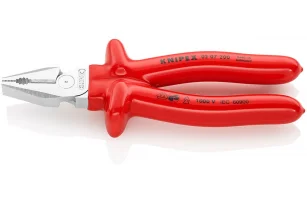Плоскогубцы комбинированные VDE, 180 мм, хром, 2-комп диэлектрические ручки, проушина для страховки,