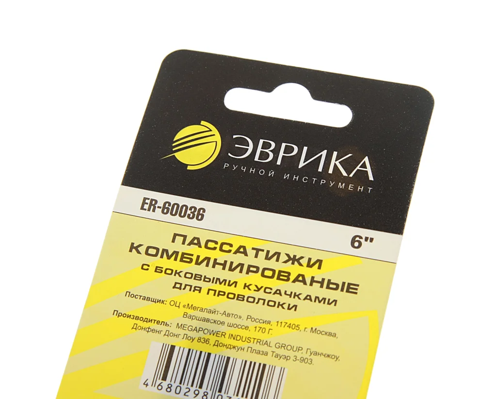 Комбинированные пассатижи с боковыми кусачками для проволоки 6 ЭВРИКА ER-60036 удобны для проведения широкого спектра работ. Инструмент позволяет захватывать небольшие детали, сжимать и плющить металл, а также перекусывать провода и проволоку. Технические характеристики: Тип: пассатижи Форма губок: прямая с полукругом и режущей кромкой Длина: 150 мм Диэлектрическое покрытие: нет Цвет рукояток: черный/желтый Материал губок: CrV Рукоятки-чехлы: двухкомпонентные Функция "антистатик": нет Для скручивания проволоки: нет Насечка: частичная С возвратной пружиной: нет Зачистка круглых кабелей: нет Возможность перекусить проволоку: есть