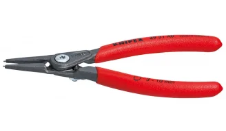 Описание Щипцы прямые для стопорных колец с ПВХ рукоятками, сжим, длинной 225 мм, 32-80 мм. Изготовлены из хромованадиевой стали, снабжены возвратной пружиной и ПВХ чехлами рукояток. Область применения Группа специального шарнирно-губцевого инструмента, применяемого для производства работ, связанных с демонтажем и установкой стопорных колец. По области применения данные инструменты разделяются на два типа: щипцы для внутренних стопорных колец и для внешних. Размеры Артикул Длина, мм Форма Применение Размер кольца, мм Ø наконечника, мм Код AG010003 230 Прямые Сжим 32-80 2,3 48657