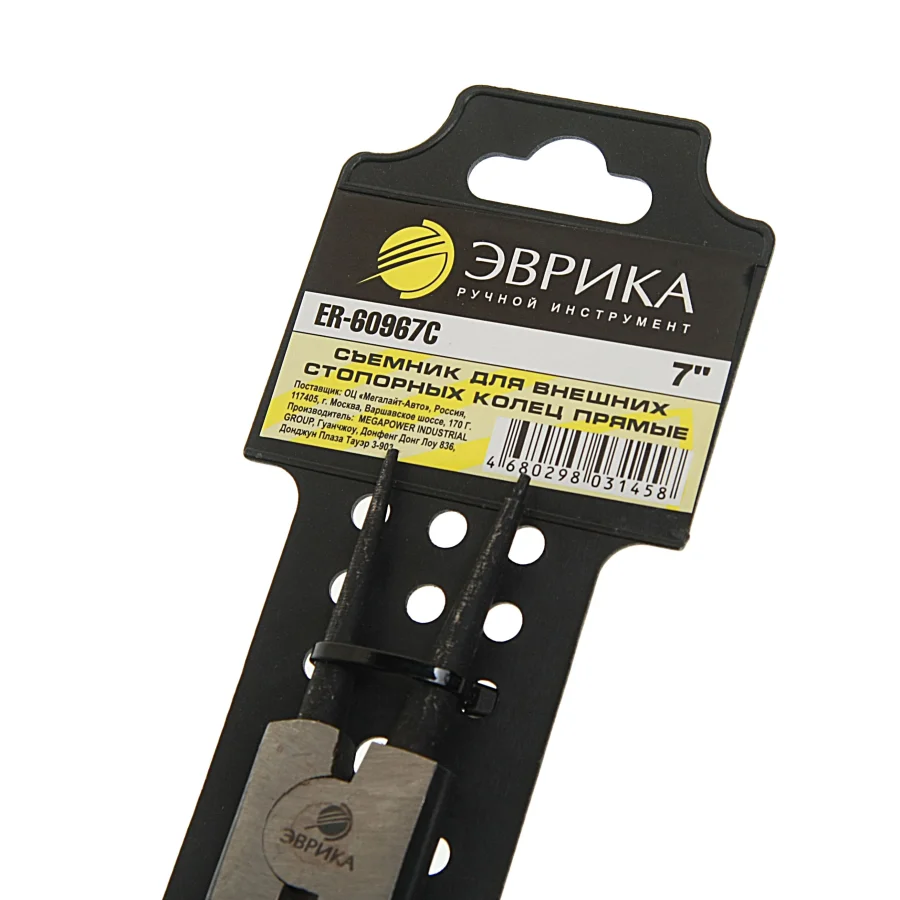 Съемник для внешних стопорных колец, прямые 7" ЭВРИКА ER-60967C представляет собой инструмент для быстрого и безопасного демонтажа и установки колец на патрубки и шланги. Наличие противоскользящих чехлов обеспечивает надежную эксплуатацию съемника. Технические характеристики: Тип стопорного кольца: внешнее Материал: CrV Длина: 175 мм Чехлы на рукоятках: есть Вес: 0.166 кг Класс товара: Профессиональный