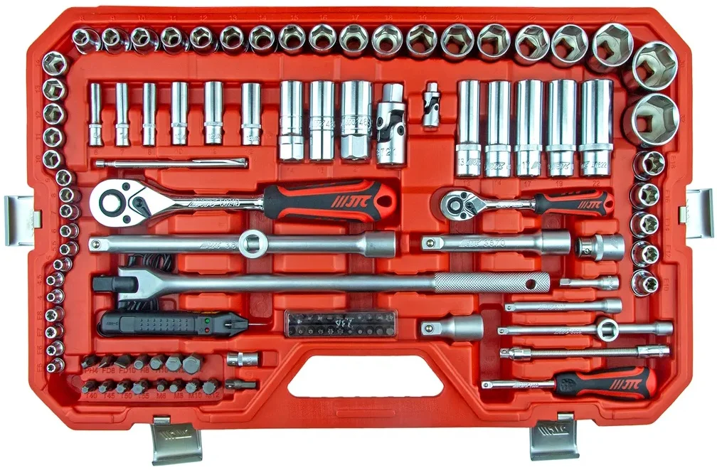 Набор инструментов 146 предметов слесарно-монтажный 1/2'',1/4'' 6-ти гранный в кейсе, JTC-H146C.