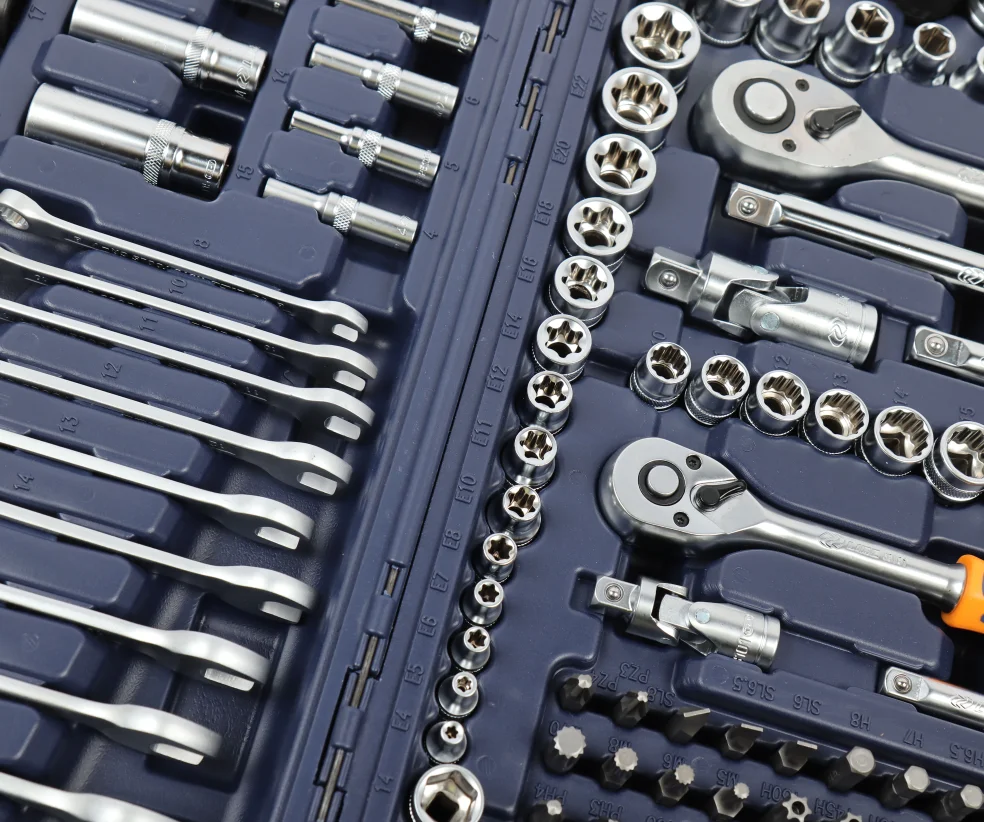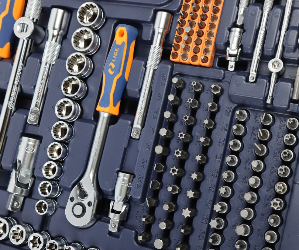 "Посадочный квадрат 1/4"": 13пр. Головки 6-гр: 4, 4.5, 5, 5.5, 6, 7, 8, 9, 10, 11, 12, 13, 14мм; 5пр. Головки Е-профиль: E4, E5, E6, E7, E8; 7пр. Головки глубокие 6-гр: 4,5,6,7,8,9,10мм; 3пр. Головки-биты Slotted: SL6.0,SL6.5,SL8.0; 2пр. Головки-биты Pozidriv: PZ.3,PZ.4; 2пр. Головки-биты Phillips: PH.3,PH.4; 8пр. Головки-биты TORX: T20,T25,T27,T30,T35,T40,T45,T50; 5пр. Головки-биты Hex: H5.5,H6,H6.5,H7,H8; 4пр. Головки-биты Spline: M4,M5,M6,M8; 6пр. Головки-биты TORX с отверстием: T27H, T30H, T35H, T40H,T45H,T50H; 2пр. Удлинители: 50, 100мм; 1пр. Трещотка (72 зуб.); 1пр. Кардан шарнирный; 1пр. Адаптер для бит; 1пр. Вороток Т-образный; 1пр. Адаптер переходник под шуруповерт 1/4""(F)х 1/4""(F); 1пр. Магнитный битодержатель; 1пр. Отвертка-вороток Посадочный квадрат 3/8"": 10пр. Головки 6-гр: 10,11,12,13,14,15,16,17,18,19мм; 6пр. Головки Е-профиль: E10,E11,E12,E14,E16,E18; 6пр. Головки глубокие 6-гр: 10,11,12,13,14,15мм; 2пр. Головки свечные: 14, 18мм; 1пр. Удлинитель: 125мм; 1пр. Трещотка (72 зуб.); 1пр. Кардан шарнирный; 1пр. Адаптер для бит; Посадочный квадрат 1/2"": 12пр. Головки 6-гр: 10,11,12,13,14,15,20,22,24,27,30,32мм; 3пр. Головки ударные: 6-гр: 17,19,21мм; 3пр. Головки Е-профиль: E20,E22,E24; 2пр. Головки глубокие 6-гр: 16,18мм; 3пр. Головки ударные глубокие: 17,19,21мм; 2пр. Головки свечные: 16, 21мм; 2пр. Удлинители: 125, 250мм; 1пр. Вороток Т-образный; 2пр. Головки-биты TORX: T55,T60; 1пр. Трещотка (72 зуб.); 1пр. Кардан шарнирный; 1пр. Адаптер для бит; Ключи: 12пр. Ключи комбинированные: 8,10,11,12,13,14,15,16,17,18,19,22мм; 7пр. Ключи шестигранные Г-образные: 1.5,2,2.5,3,4,5,6мм; 30пр. Биты 5/16"" (S2)(L=30MM) : 4пр. Биты Spline: M5,M6,M8,M10; 5пр. Биты Hex: H5.5,H6,H6.5,H7,H8мм; 8пр. Биты TORX: T20,T25,T27,T30,T35,T40,T45,T50; 6пр. Биты TORX с отверстием: T27H,T30H,T35H,T40H,T45H,T50H; 7пр. Биты Pozidriv: PZ3,PZ4,PH3,PH4,SL6,SL6.5,SL8; 44пр. 1/4"" (L=25MM): 3пр. Биты Spline: M5,M6,M8; 4пр. Биты Hex с отверстием: H3, H4, H5,H6мм; 8пр. Биты TORX с отверстием: T8H,T10H,T10H,T15H,T15H,T20H, T20H, T25H, T25H, T40H; 5пр. Биты TORX: T8,T10,T15,T20,T25; 2пр. Биты Pozidriv: PZ1,PZ2; 2пр. Биты Phillips: PH.1,PH.2; 3пр. Биты Slotted: SL4,SL4.5,SL6; 2пр. Биты Square: S1,S2; 3пр. Биты Spanner: 4, 6, 8мм; 3пр. Биты Torque: 6, 8, 10мм; 3пр. Биты Tri-wing: 1, 2, 3мм "