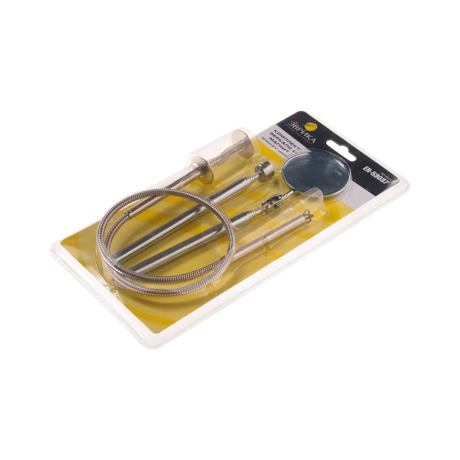 Набор Эврика включает в себя: Круглое телескопическое зеркало диаметром 50 мм Телескопический магнит, способный удерживать вес до 1,3 кг Захват с длиной 610 мм Этот комплект идеально подходит для работы с небольшими металлическими предметами и крепежом. Он станет незаменимым помощником для автомехаников, слесарей и сотрудников сервисных служб. Технические характеристики: Длина: 610 мм Диаметр зеркала: 50 мм Наличие подсветки: нет Фонарик: нет Диаметр магнита: 6 мм Элементы питания: отсутствуют Вес: 0,185 кг