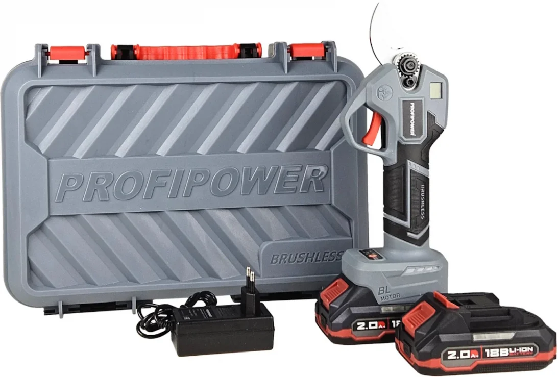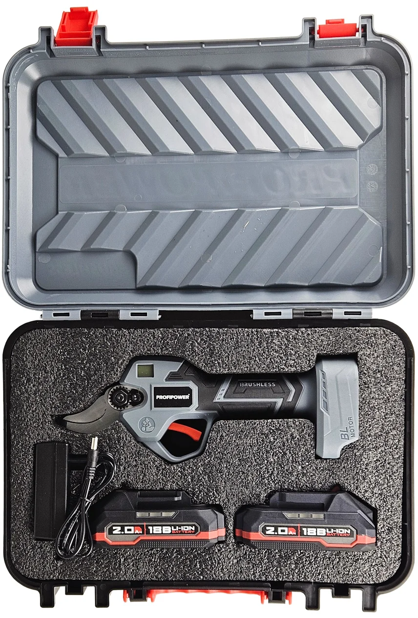 Аккумуляторный бесщеточный садовый секатор PROFIPOWER MKGSP-18V (18В,Li-ion-2шт, 2.0Ач, З/У, в кейсе), E0099.