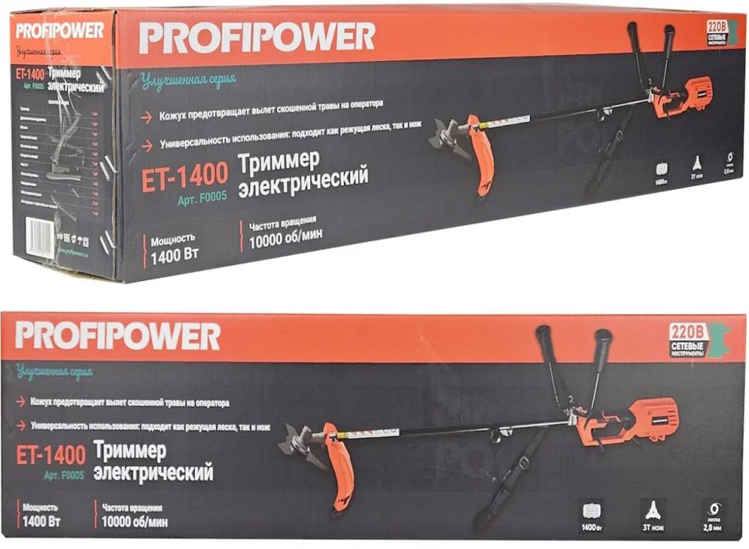 - Электрический триммер PROFIPOWER ET-1400, артикул F0005 - это мощный и надежный электрический садовый триммер, который станет незаменимым помощником в уходе за вашим садом или участком.