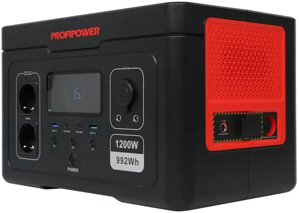 - Аккумуляторные портативная электростанция PROFIPOWER ПЭ-1200PRO, F0062 предназначена для автономного электроснабжения в условиях отсутствия централизованного питания, например, на природе, даче или в качестве автономного источника электроэнергии переменного однофазного тока напряжением 220-240 В, частотой 50/60 Гц.