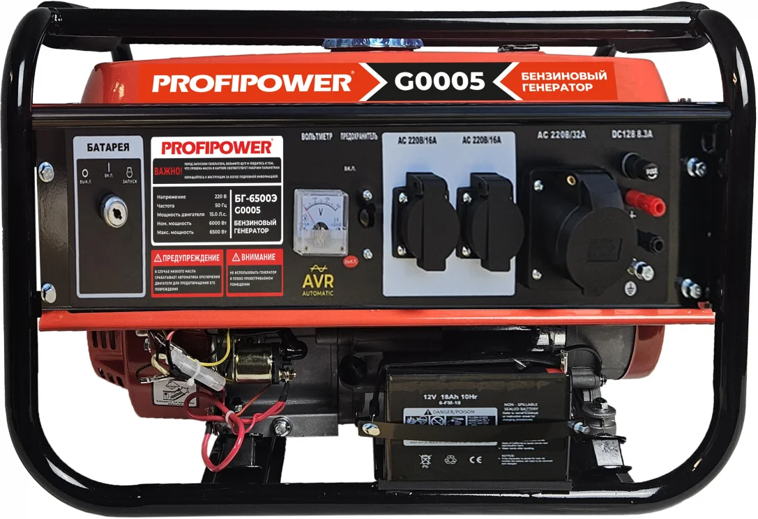 Бензиновый генератор PROFIPOWER БГ-6500Э предназначен для обеспечения автономного электропитания для работы электроинструмента в местах, где отсутствует система центрального электроснабжения. Он может также применяться в виде резервного источника, например, на даче. В генераторе установлен 4-х тактный одноцилиндровый бензиновый двигатель . Модель Бензиновый генератор PROFIPOWER БГ-6500Э работает на неэтилированном бензине АИ92, но может функционировать и на сжиженном газе при условии установки дополнительного газового оборудования (приобретается отдельно).