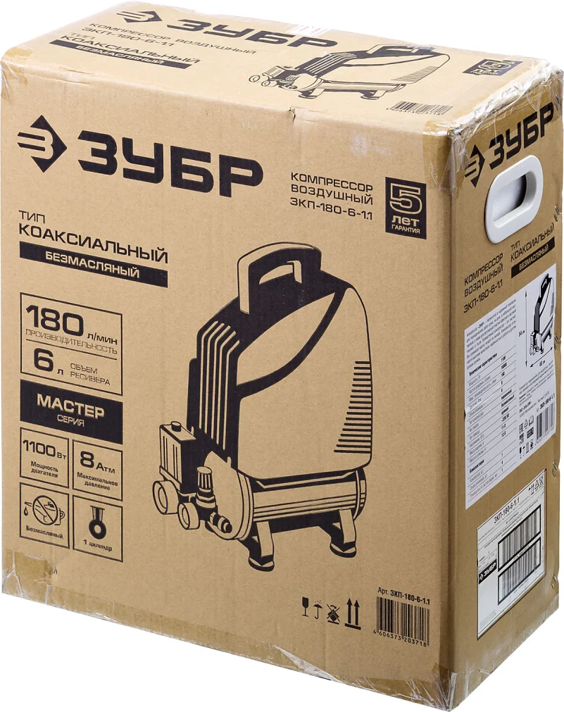 Качественное и надежное переносное оборудование для периодических работ дома, на даче, в небольшой мастерской, а так же для регулярной очистки от пыли офисной и бытовой техники . Безмасляный компрессор - это чистый, без примесей масла, воздух на выходе. При правильной эксплуатации ресурс данных компрессоров составляет не менее 1000 часов*. * на основании результатов испытаний лаборатории компании АО «ЗУБР ОВК»
