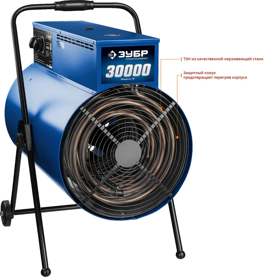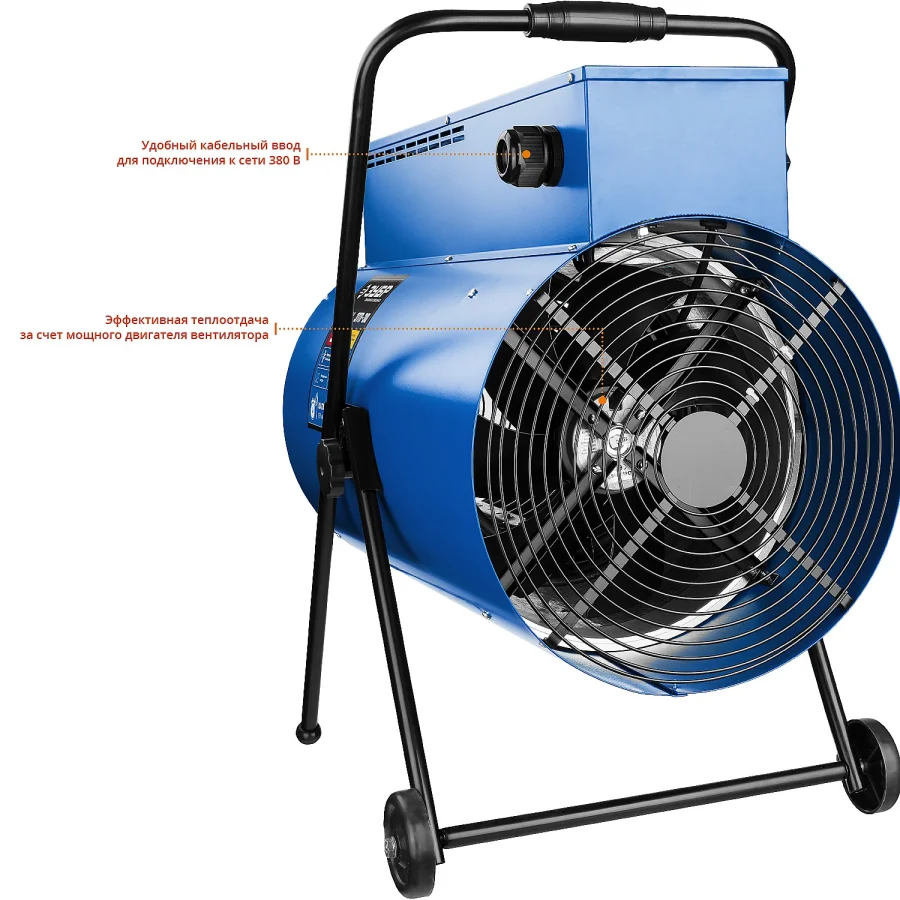 Профессиональные электрические тепловые пушки с питанием от трехфазной электрической сети эффективны для быстрого и направленного обогрева складских и производственных помещений, ангаров и мастерских, благодаря большой площади нагревательных элементов и мощным двигателем вентилятора. Конструктивные особенности обеспечивают защиту как пользователя, так и тепловой пушки в случае возникновения нештатных ситуаций. ЗУБР - тепло всегда и везде