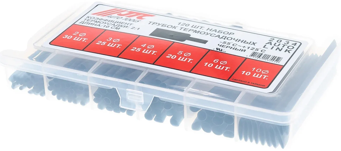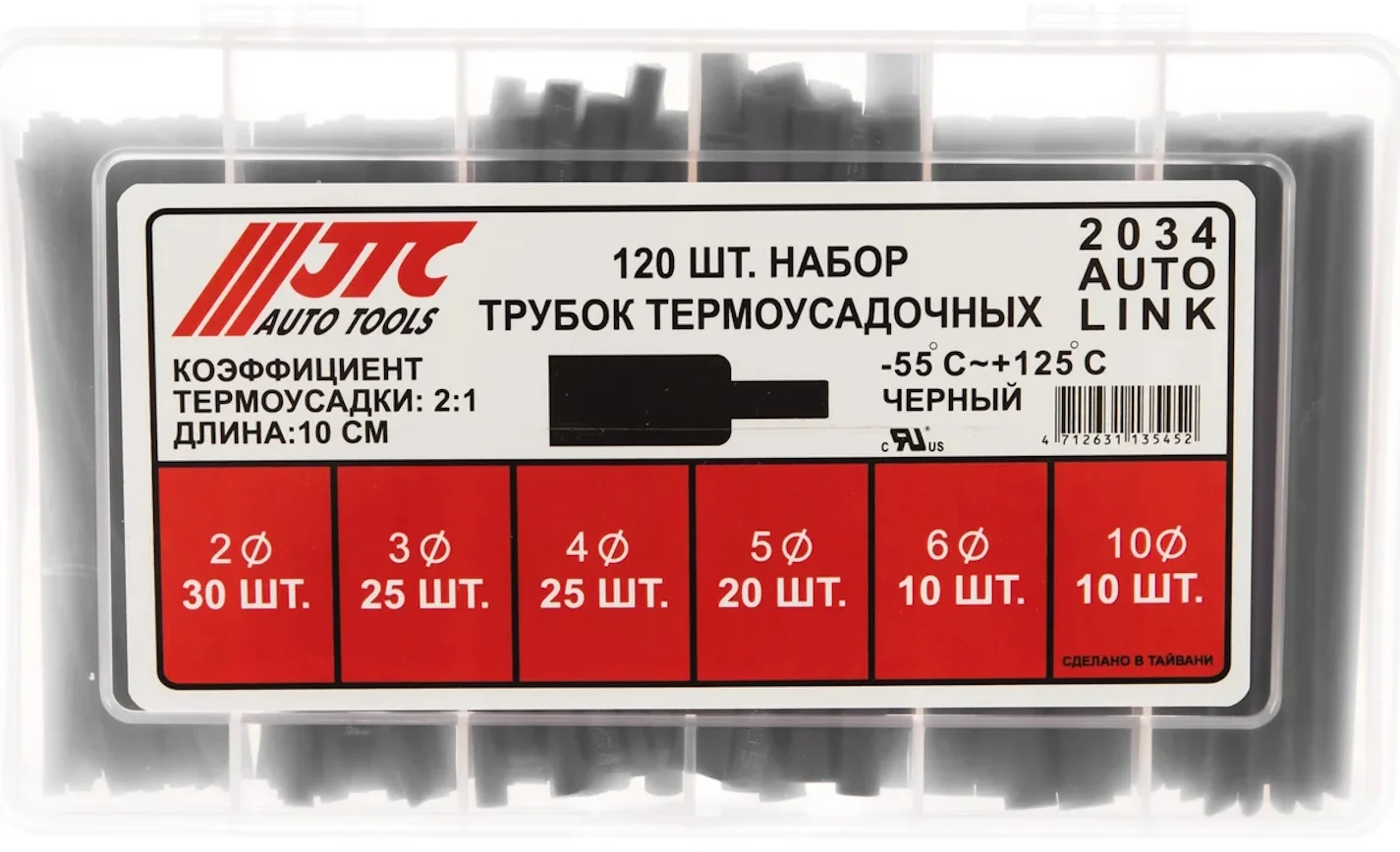 Набор термоусадочных трубок, 6 типоразмеров, длина 100мм, 120шт (в боксе), JTC-2034