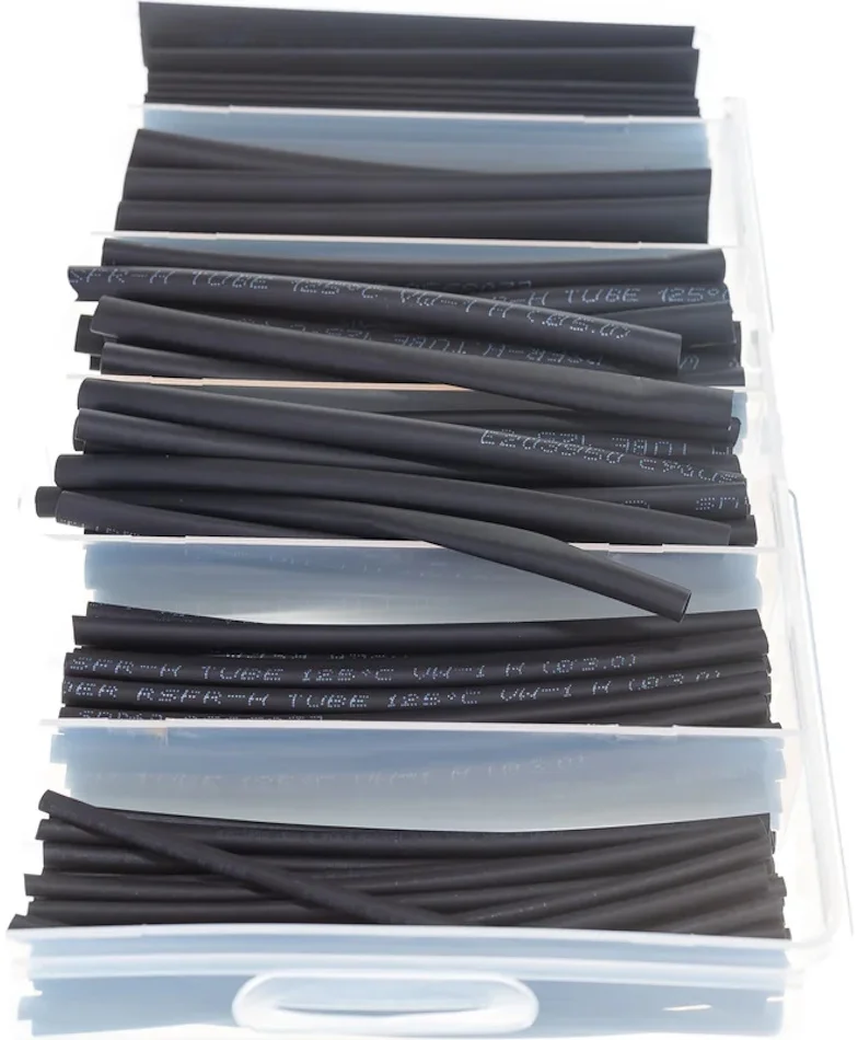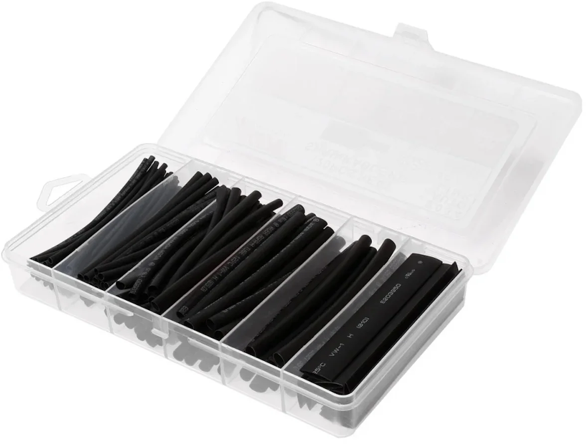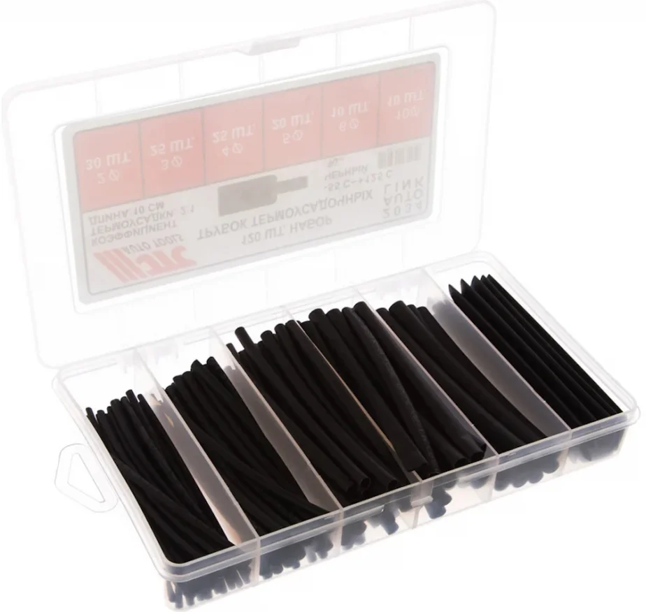 - Набор включает в себя 120 трубок 6-ти типоразмеров для создания изоляционного слоя, например, на электрических проводах или пучках из проводов.