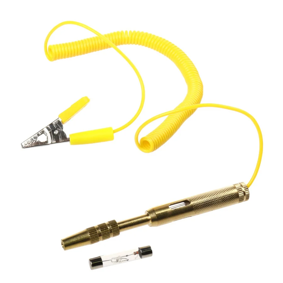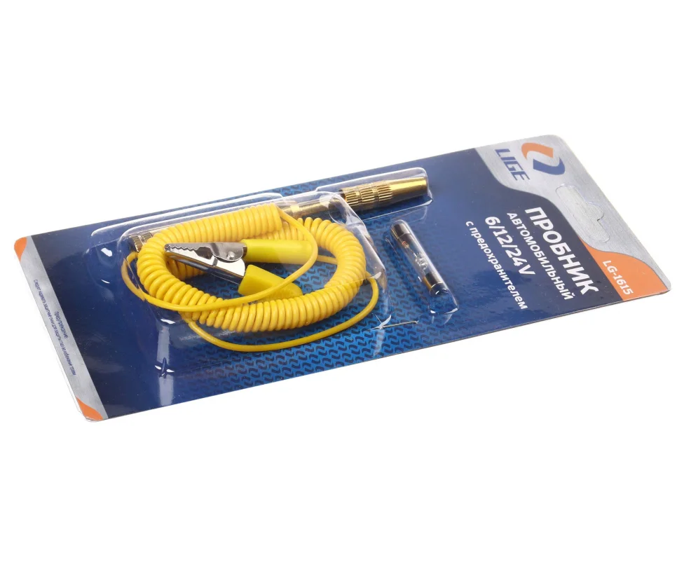 ПРОБНИК АВТОМОБИЛЬНЫЙ С ПРЕДОХРАНИТЕЛЕМ Гибкая конструкция колпачка ручки не требует снятия защитного колпачка, его сложно потерять, что позволяет избежать контакта зонда с внешней средой и травмирования людей; конструкция с удлиняемым пружинным проводом повышает удобство обнаружения. Диапазон измерения: 6 В/12 В/24 В. Длина ручки: 110 мм. Длина провода: 3000 мм