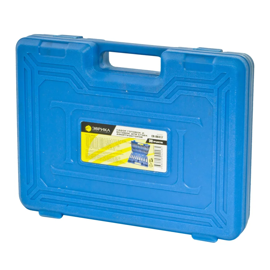 Набор головок и вставок для стоек амортизаторов 39пр., в кейсе ER-86417 ЭВРИКА поставляется в эргономичном кейсе, оснащенном ячейками под каждый из инструментов. Удобная ручка обеспечивает комфортную переноску комплекта с одного рабочего места на другое. Кроме того, этот набор станет отличным подарком для тех, кто ценит качественный и надежный инструмент — для деда, сына, мужа, дяди или брата. Все инструменты изготовлены из качественных высокопрочных материалов, отличаются повышенной износостойкостью и долгим сроком службы. Комплектация: Глубокая головка 19 мм: 14, 16, 17, 18, 19, 21, 22, 24 и 27 мм; Бита с приводом 10 мм 2х-гранная: 4, 5.2, 6, 6.3, 7, 8, 9, 10 и 12 мм; Бита с приводом 10 мм 6ти-гранная: 8, 9, 10 и 11 мм; Бита с приводом 10 мм D-образная: 5 и 10 мм; Бита с приводом 10 мм с торцевым профилем: 5, 6, 7 и 8 мм; Бита с приводом 10 мм с шлицевым профилем: 3, 3.5 и 4 мм; Бита с приводом 10 мм 12-ти-гранная: М12; Бита с приводом 10 мм с профилем TORX: T50 и T60; Корончатая головка: 10.5х3.5, 12.5х3.5, 14.5х2.5, 14.5х3 и 14.5х5 мм; Кейс.