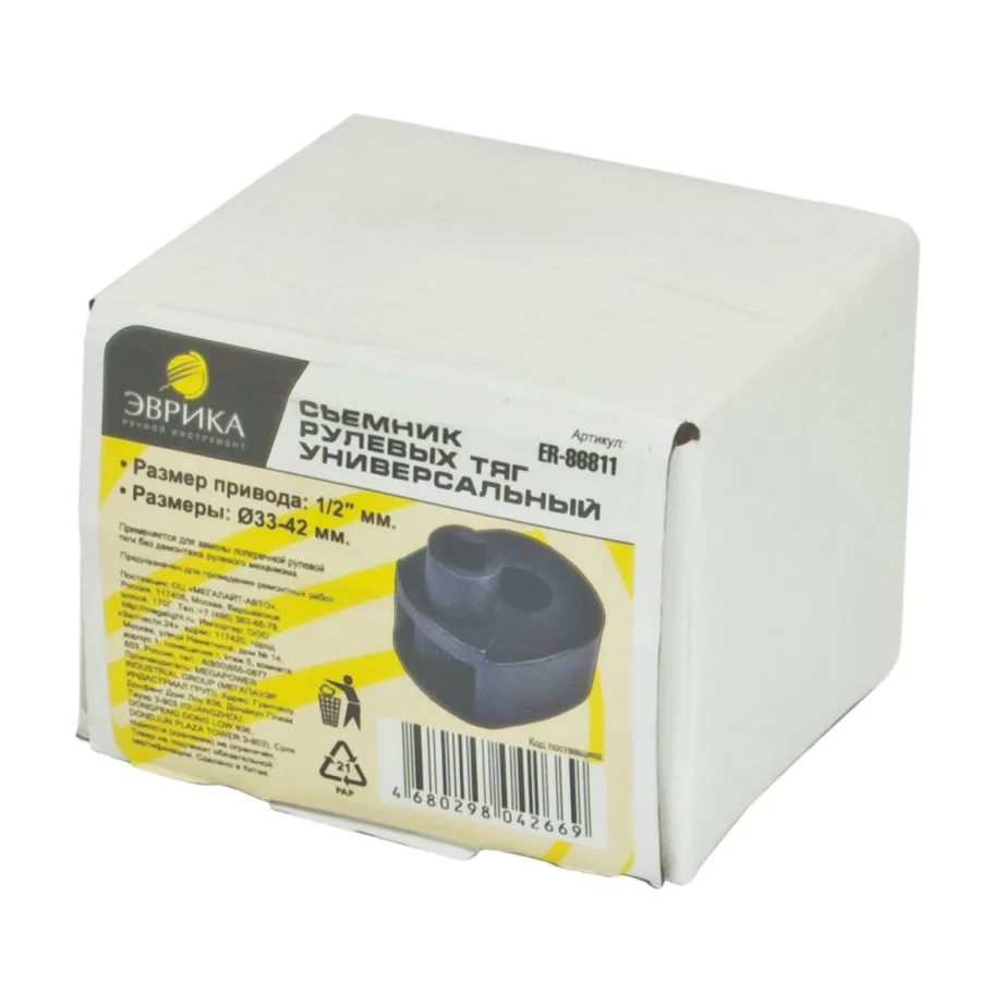 Съемник рулевых тяг универсальный 33-42мм для демонтажа и установки рулевой тяги Предназначен для снятия и установки рулевой тяги в процессе её замены. Инструмент устанавливается на рулевую тягу и фиксирует гайку, которая крепит рулевую тягу к рейке. После этого можно приступать к снятию рулевой тяги. Применение: Удобный посадочный квадрат: Оснащен квадратом 1/2", что обеспечивает надежное соединение с другими инструментами и удобство в работе. Широкий диапазон размеров: Подходит для тяг диаметром от 33 до 42 мм, что делает его универсальным для большинства автомобилей и грузовиков. Технические характеристики: Вес: 0.465 кг Класс товара: Профессиональный