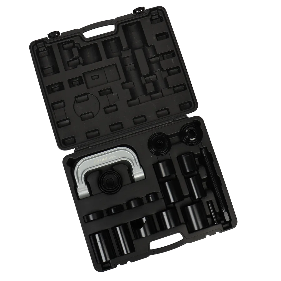 "Состав: 1 шт. С-образный зажим: длина захвата 213 мм, внутренняя длина захвата 160 мм, толщина 34,5 мм 1 шт. винт: длина 260 мм, диаметр 27,3 мм 1 шт. головка винта: длина 260 мм, диаметр 27,3 мм 7 шт. монтажная втулка: (толщина стенки 3 мм): диаметр 50,7 мм * высота 45 мм, диаметр 63 мм * высота 45 мм, диаметр 76 мм * высота 55 мм, диаметр 63 мм * высота 19,5 мм, диаметр 70 мм * высота 58 мм, диаметр 76 мм * высота 58 мм, диаметр 64,5 мм * высота 70 мм 5 шт. разъем для демонтажа: 2 шт. диаметр 77 * толщина 27 мм, Диаметр 54 мм*толщина 25,2 мм, Диаметр 56,5 мм*толщина 21 мм, Диаметр 26,8 мм*толщина 23 мм Толщина 23 мм 6 шт. демонтирующая втулка: диаметр 51 мм*высота 93 мм, диаметр 57 мм*высота 61,5 мм, диаметр 50 мм*высота 93 мм, диаметр 62,2 мм*высота 52 мм, диаметр 73 мм*высота 86 мм, диаметр 63 мм*высота 91 мм "