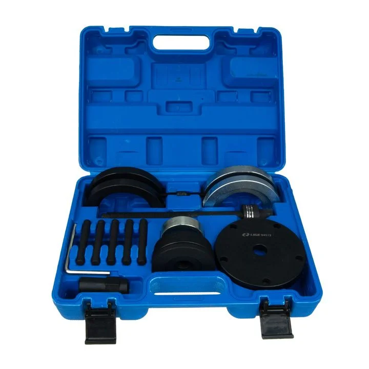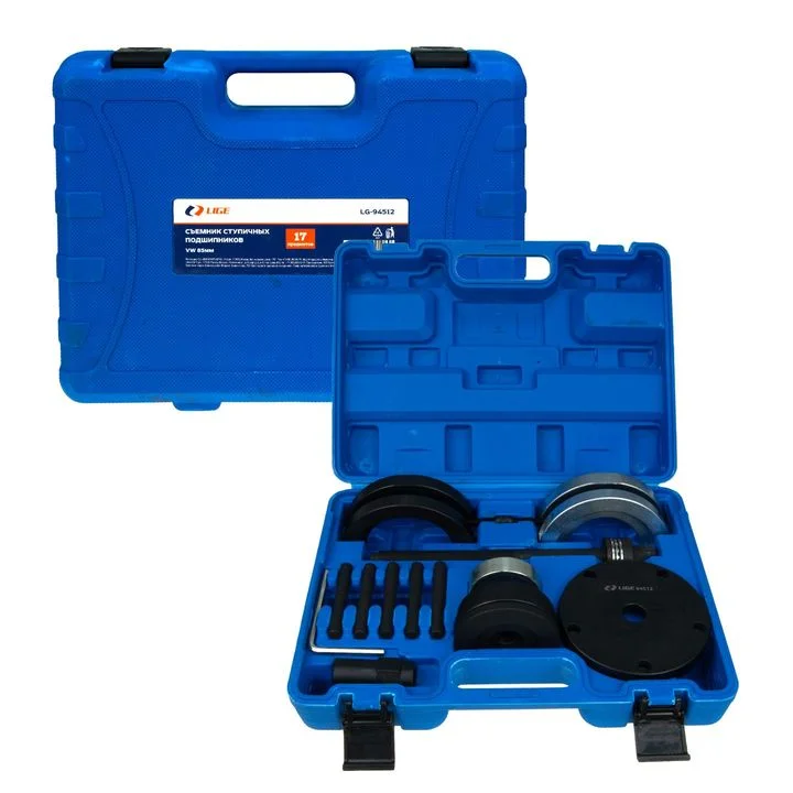 "СЪЕМНИК СТУПИЧНЫХ ПОДШИПНИКОВ 17ПР., (VW 85ММ) ВЕС: 8.50кг. Размер кейса: 380 × 272 × 110мм. Может использоваться на месте при замене передних ступичных подшипников. Подходит для: Volkswagen Touareg, T5, Transporter, Mighty Way. Характеристики продукта: нет необходимости демонтировать датчики ABS, чтобы снять соответствующие подшипники. Материал продукта: сталь 45#."