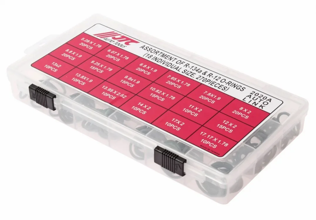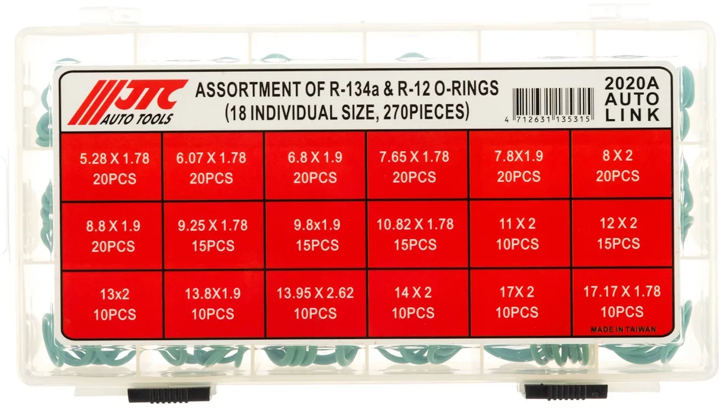 Набор уплотнительных колец для систем кондиционирования с хладагентами R-12/R-134, 270шт (в боксе), JTC-2020A.