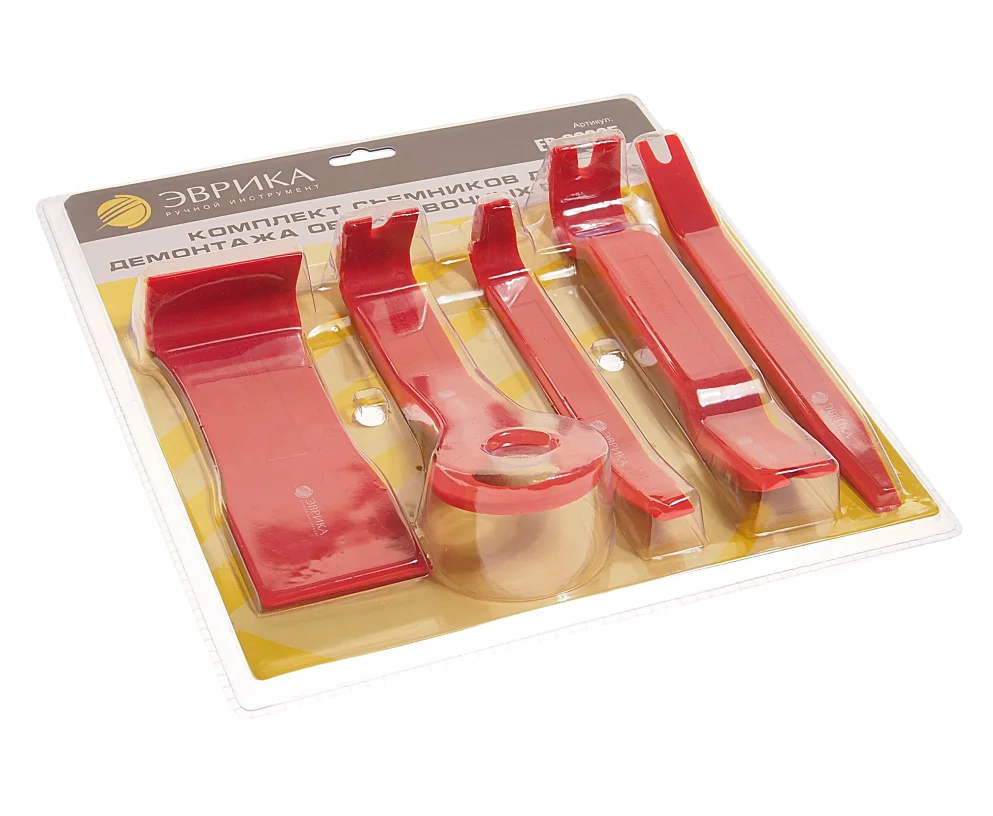 Набор съемников для демонтажа облицовочных панелей, 5 шт ЭВРИКА ER-86205 выполнен из прочного пластика. Комплект подойдет для работ с различными панелями и клипсами внутри автомобиля. Благодаря особенностям материала инструменты не царапают поверхность деталей. Технические характеристики: Назначение: демонтаж панелей Длина: 280 мм Набор: да Количество предметов в наборе: 5 Упаковка: блистер Вес:0,343 кг Класс товара: Профессиональный