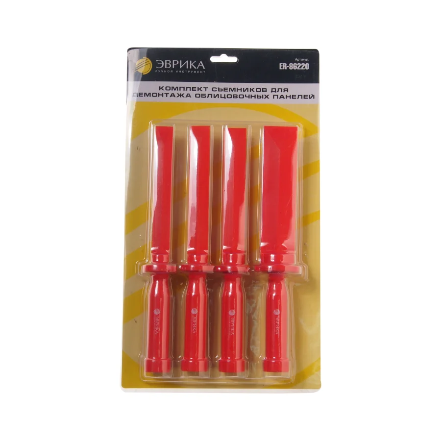 Набор съемников пистонов с пластиковой ручкой, 6 шт. ЭВРИКА ER-86157 представляет собой комплект удобного инструмента: прочная жесткая рукоять; длинный стержень. Это обеспечивает высокую скорость разборки салона автомобиля. Технические характеристики: Назначение: съёмник пистонов/клипс Длина: 220 мм Набор: да Количество предметов в наборе: 6 Упаковка: блистер Вес: 1.203 кг Класс товара: Профессиональный