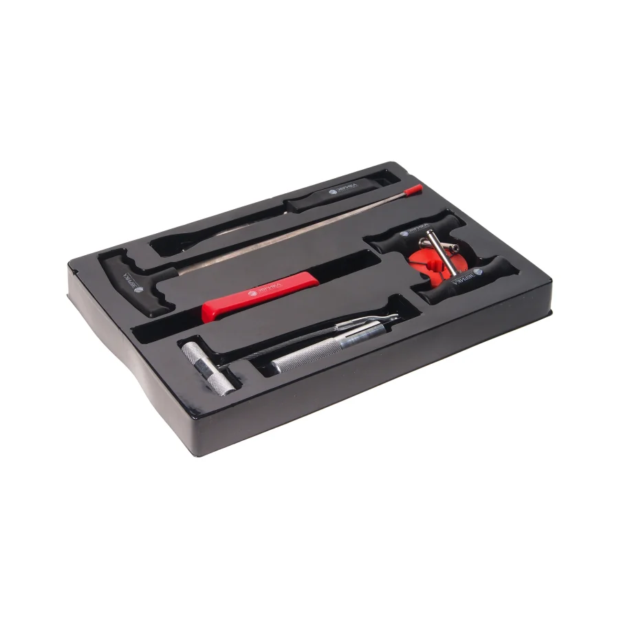 Набор для демонтажа стекол нож, струна, держатели, шило, съемник пистонов ЭВРИКА ER-86079 уменьшает затраты времени на удаление лобового стекла. Струна прорезает старый уплотнитель и позволяет вынуть стекло целиком, без трещин и сколов. Технические характеристики: Вес: 1.103 кг Класс товара: Профессиональный
