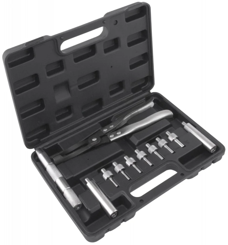 Щипцы для демонтажа маслосъемных колпачков, 250 мм Thorvik® . Щипцы со специальными полукруглыми захватами надежно удерживают сальники направляющих втулок клапанов грм (маслосъемные колпачки), что позволяет легко удалить их из головки блока цилиндра. Область примененияПредназначены для производства работ по обслуживанию клапанного механизма грм двигателей внутреннего сгорания.
